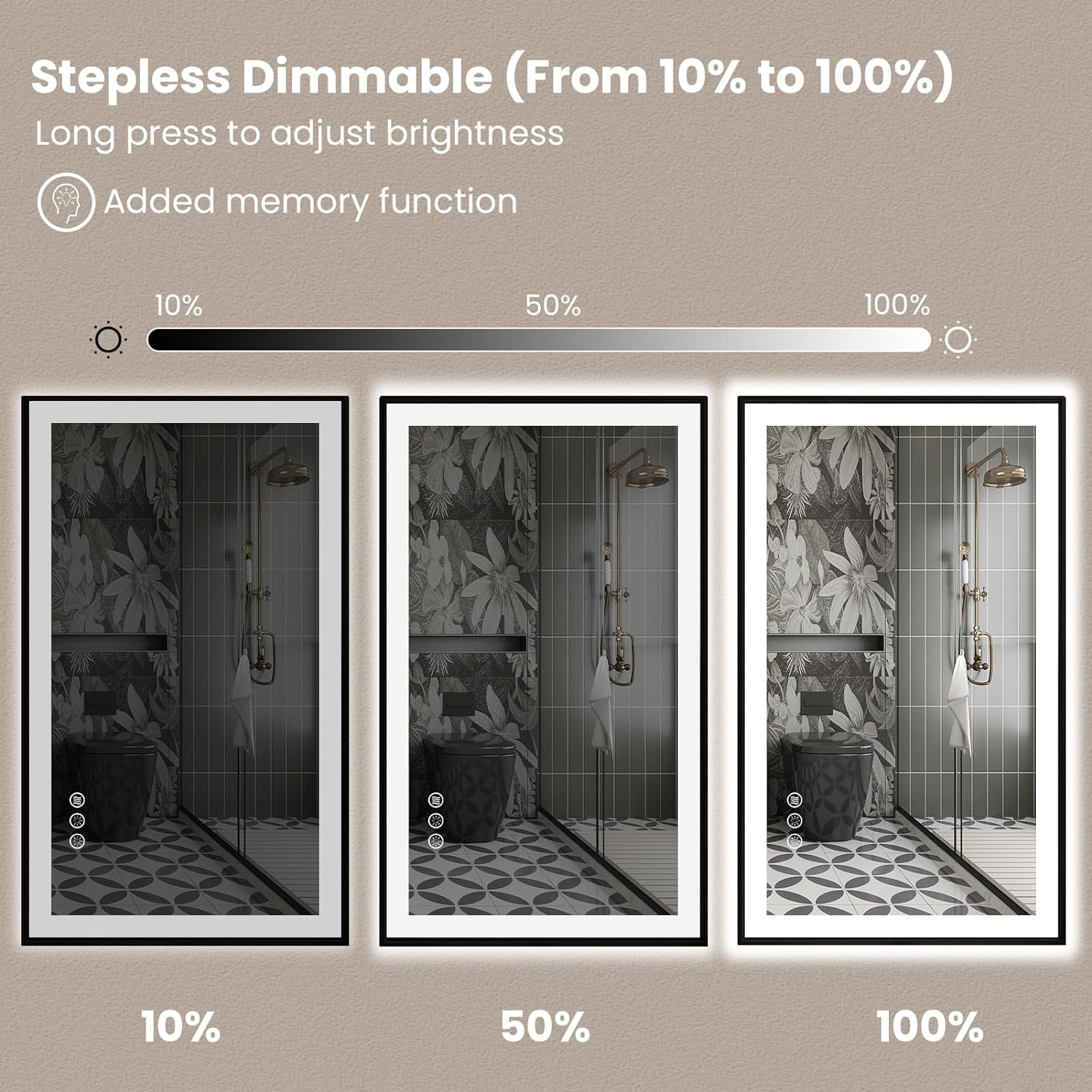 Amorho 72"x 32" LED Bathroom Mirror with Black Frame, Front Light and Backlit(Controlled Separately), Stepless Dimmable, Anti-Fog, Shatter-Proof, 3 Colors, Memory