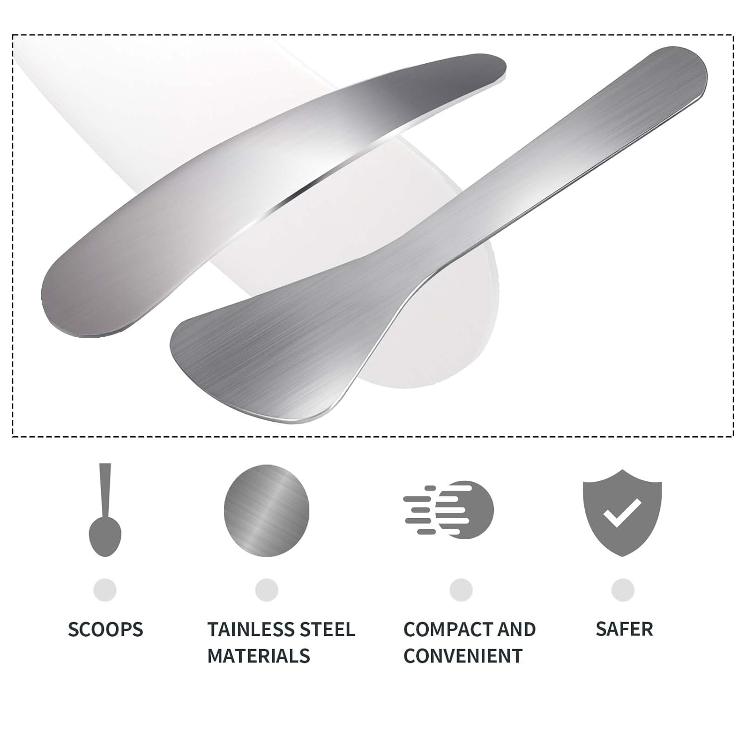 - 【Packaging List】 The package contains 2 mini stainless steel cosmetic spatulas, 2 shapes, silver color.