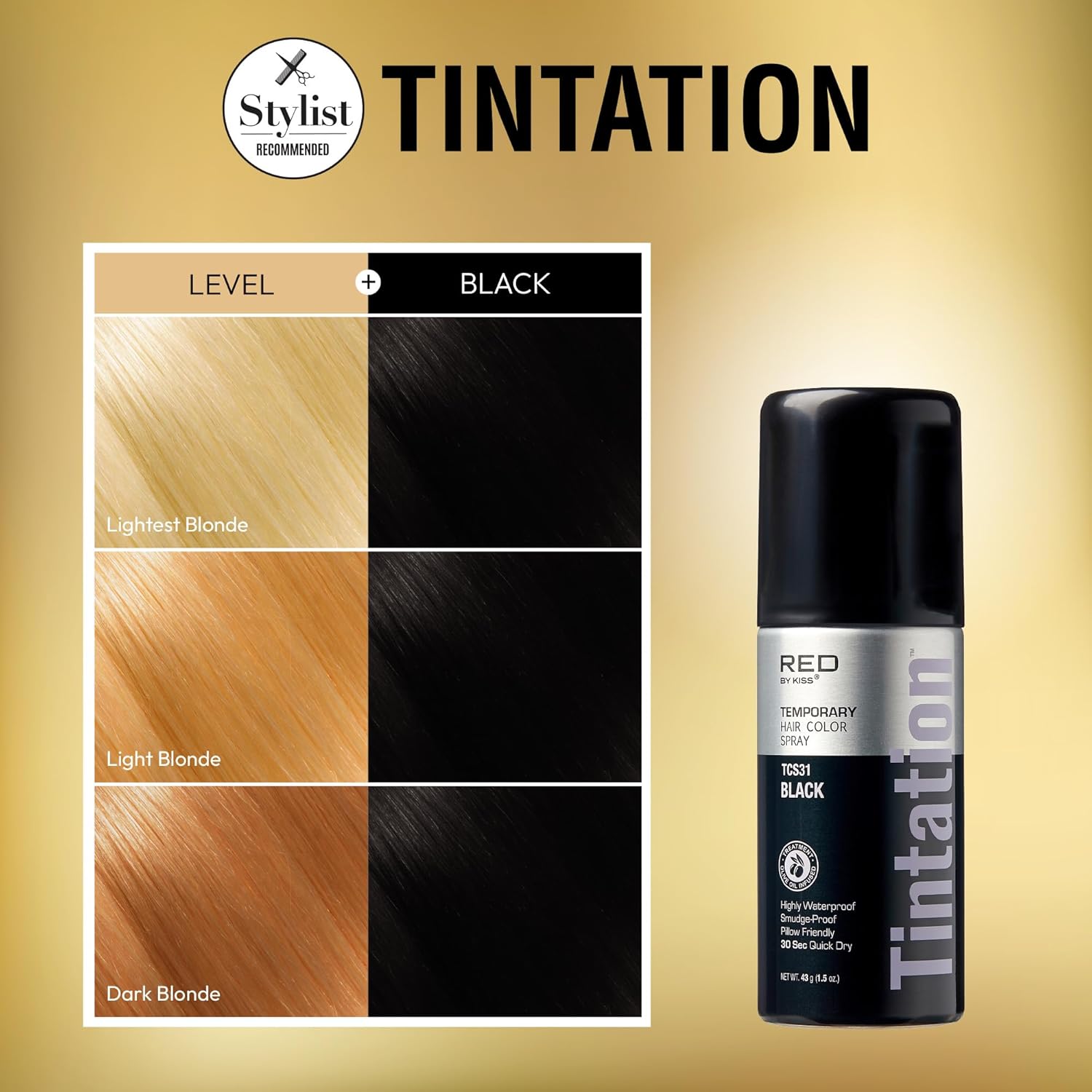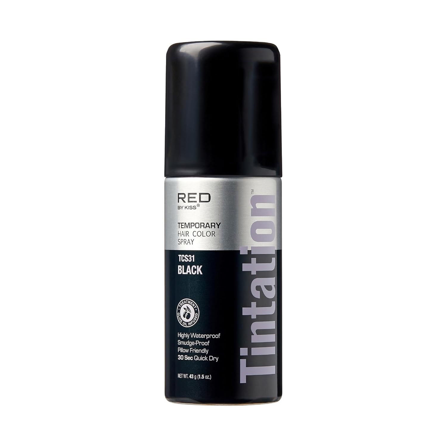RED by Kiss 1.5OZ. Tintation Temporary Hair Color Spray, Instant Gray Root Cover Up, Water-Resistant, Smudge-Proof, Hairline & Barber Touch-Up, Quick Dry, Travel Size Spray (Black)