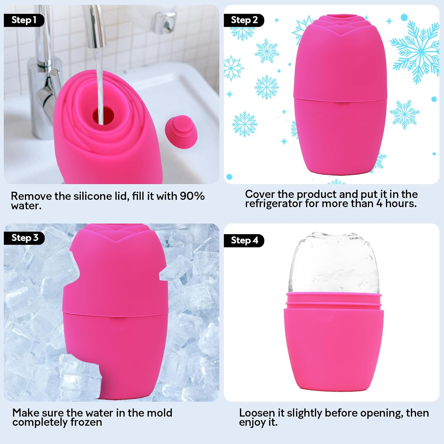 - 💦Calm Skin- The coolness of the ice roller closes pores while the roller promotes blood circulation,which can reduce puffiness and wrinkling,restore radiance and lifts face.