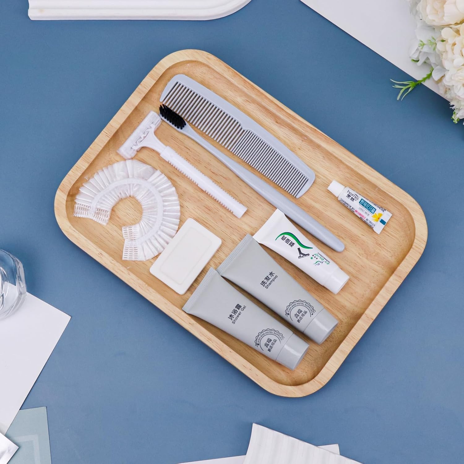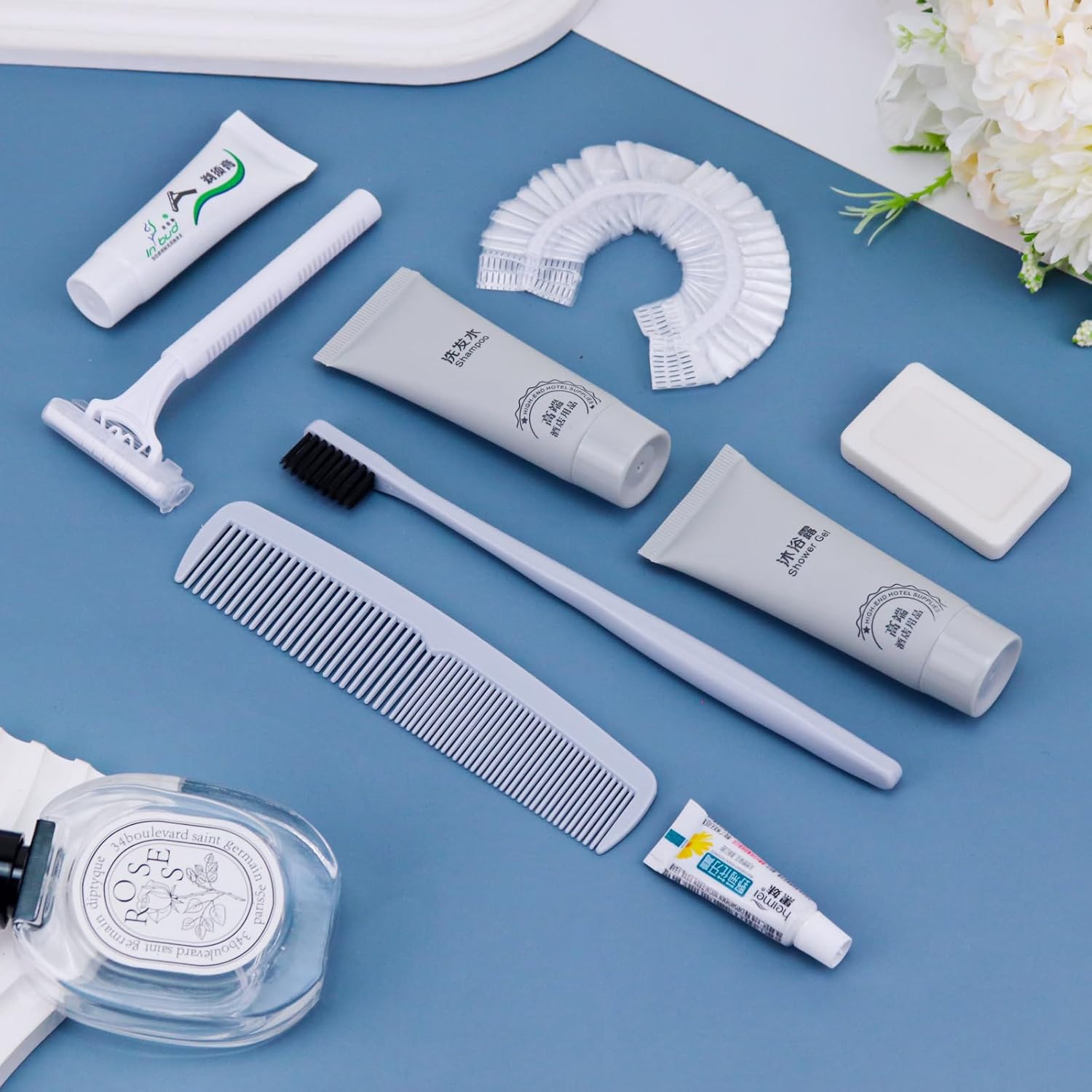 - More sets to match: our hygiene travel kit comes in a pack of 25 sets. Each travel size hygiene products bulk set consists of a Toothbrush, toothpaste, shaver, Shaving cream, comb, bath gel, shampoo, soap and bath cap. 9 items in a set. personal care travel size toiletries make it even more comprehensive, convenient and comfortable to use.