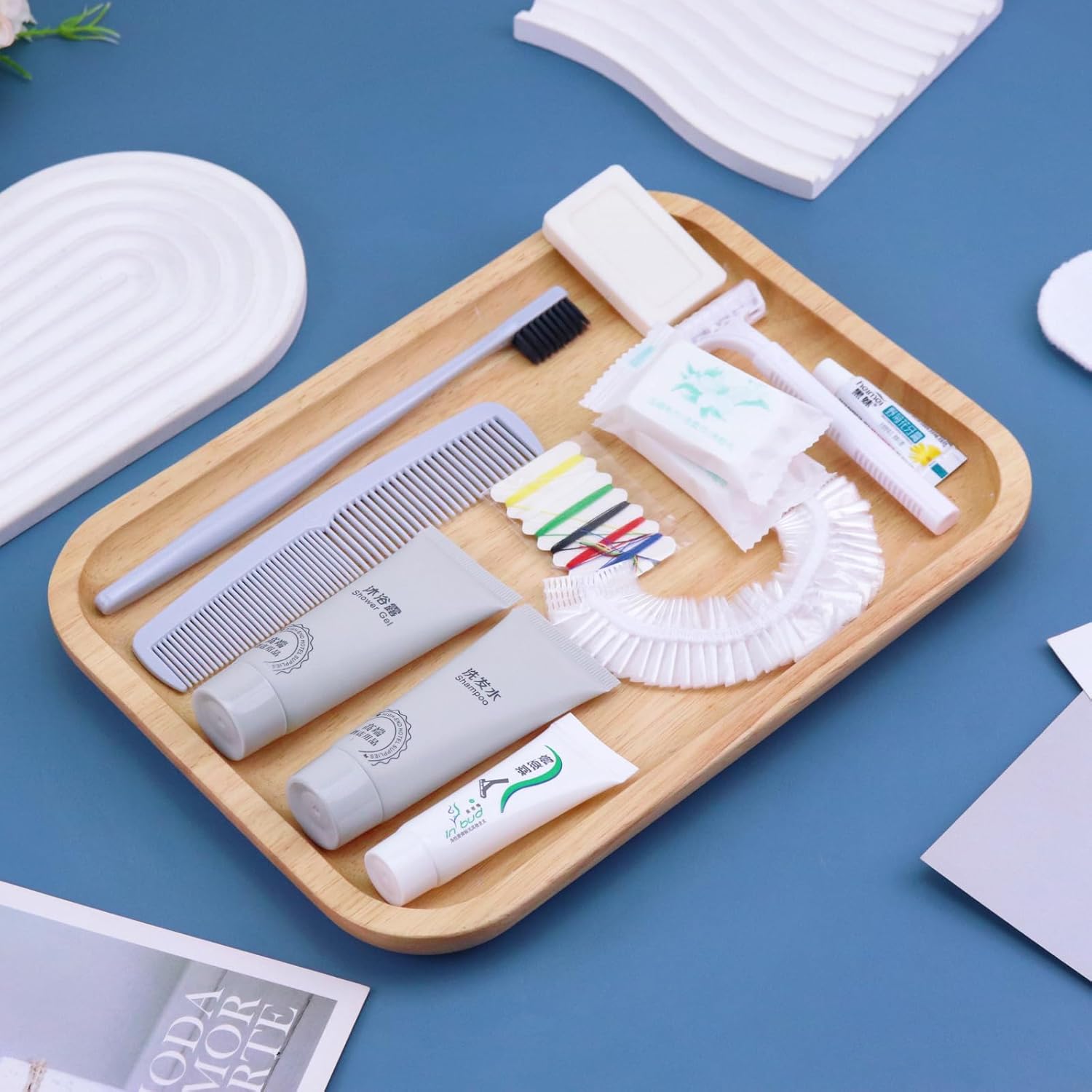 - More sets to match: our hygiene travel kit comes in a pack of 12 sets. Each travel size hygiene products bulk set consists of a Toothbrush, toothpaste, shaver, Shaving cream, comb, bath gel, shampoo, soap, bath cap, Needle and thread bag, Shoe Shine Cloth and 2 compressed face towels. 13 items in a set. personal care travel size toiletries make it even more comprehensive, convenient and comfortable to use.