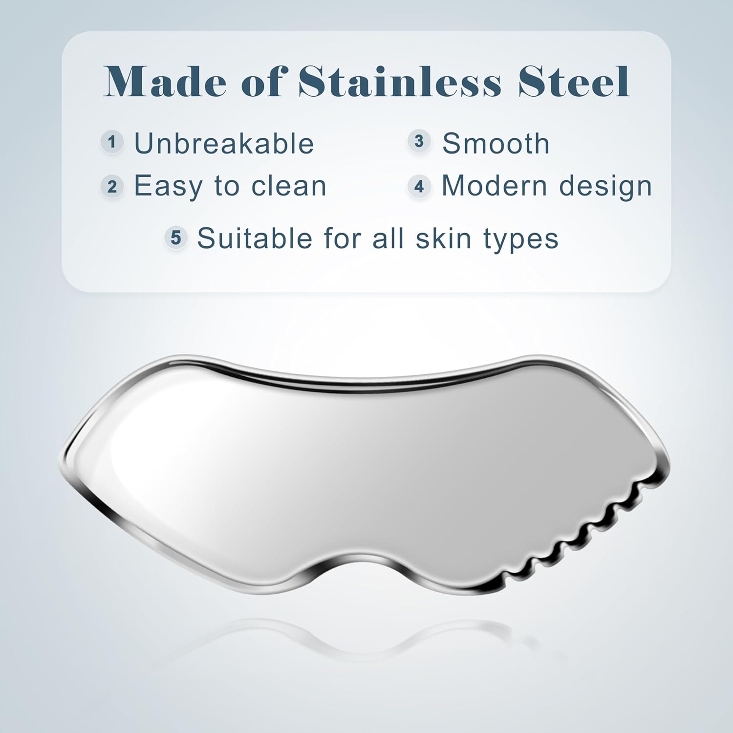 MoHern 2 Pcs Stainless Steel Gua Sha Tool, Gua Sha Facial Tools, Durable GuaSha Tool for Jawline Sculpting, Face Massager, Puffiness Reducing, Skin-Care Gift