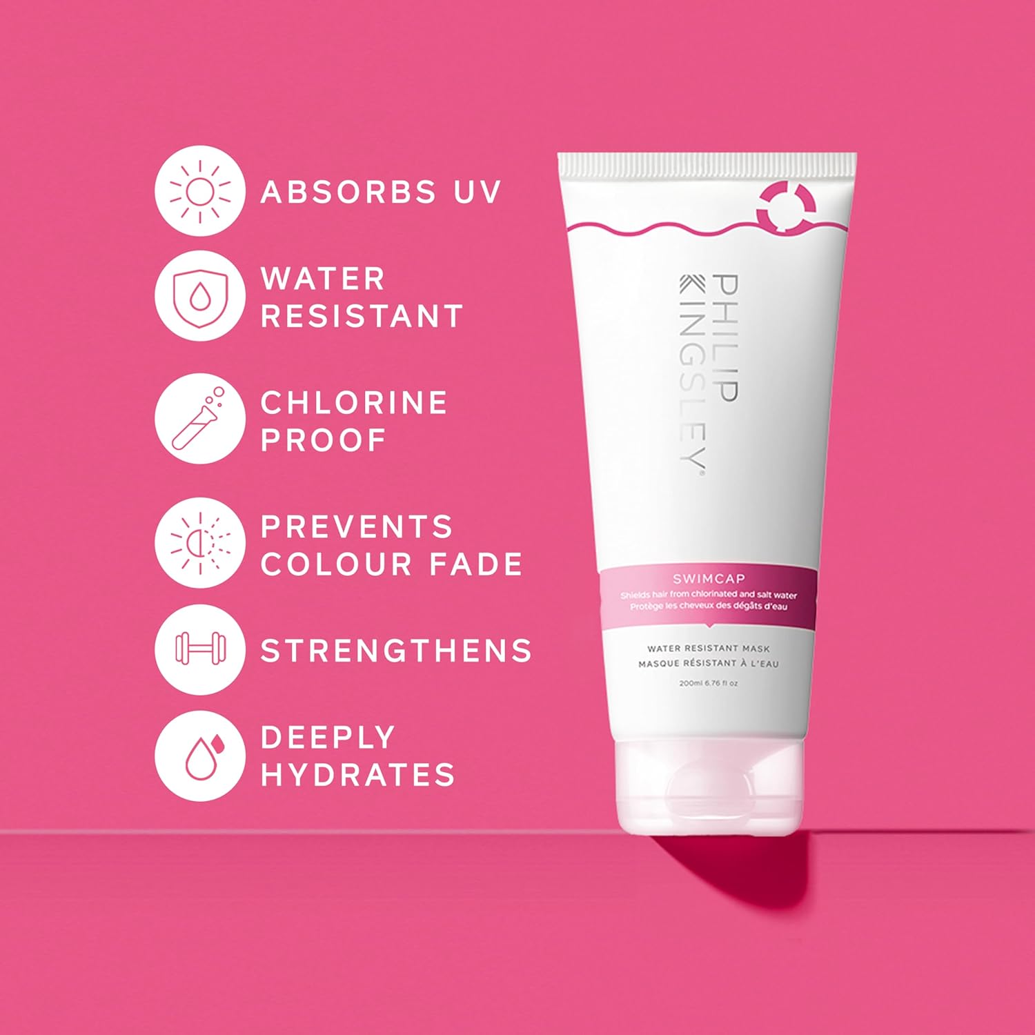 - SWIMCAP MASK: The unique formula of the pre-swim hair protection mask helps protect your hair from the drying and damaging effects of chlorine-filled pools and salt water.