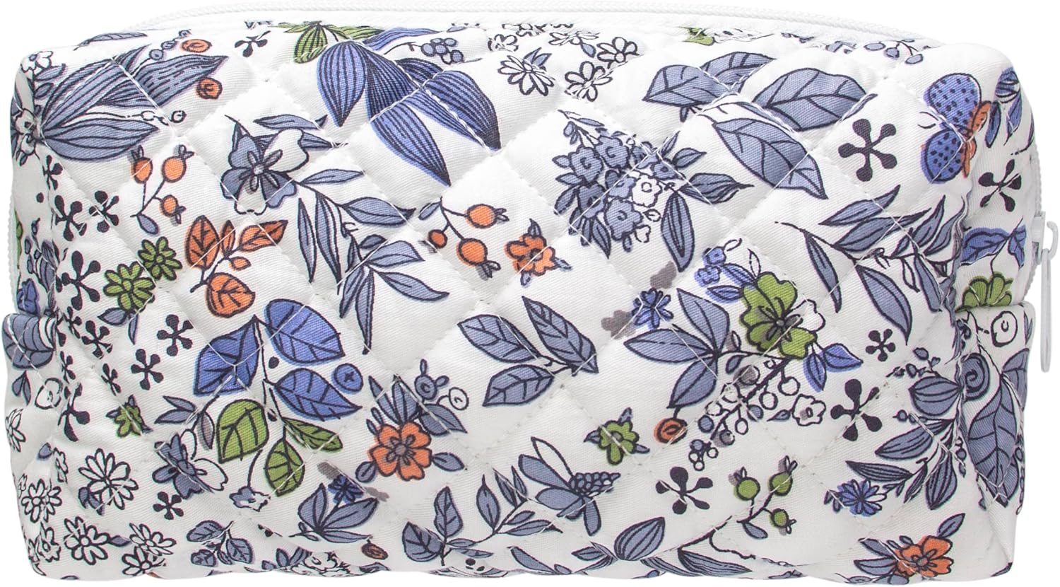 PAZIMIIK Vintage Quilted Makeup Bag Cosmetic Pouch for Brushes Pencils and Travel Make Up Accessories for Women and Girls,Leaf White