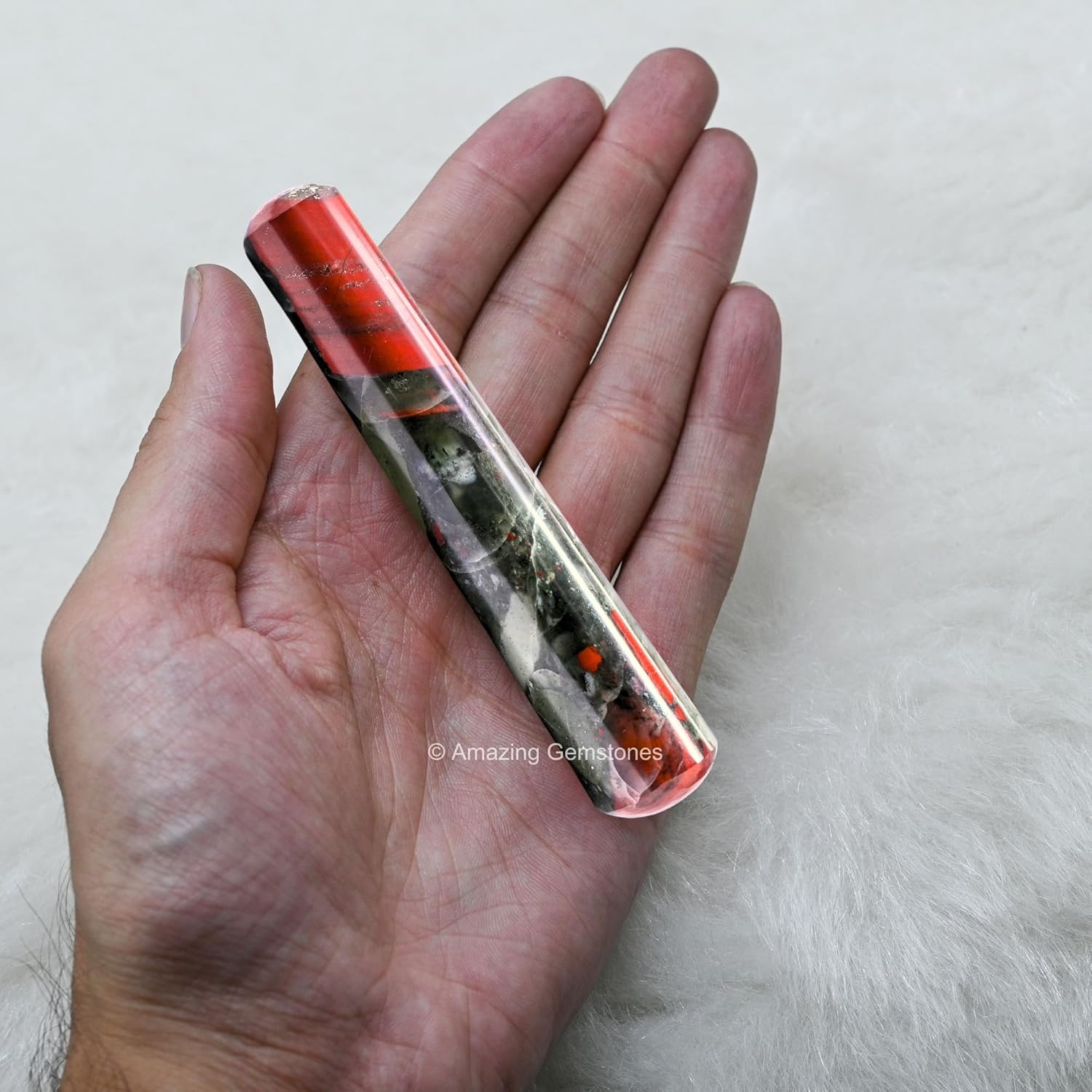 Amazing Gemstone African Bloodstone Crystal Wand Massage Stick - Pelvic Wand Gua Sha for Adults - Crystals and Healing Stones Massage Wands for Adults Gifts (Smooth)