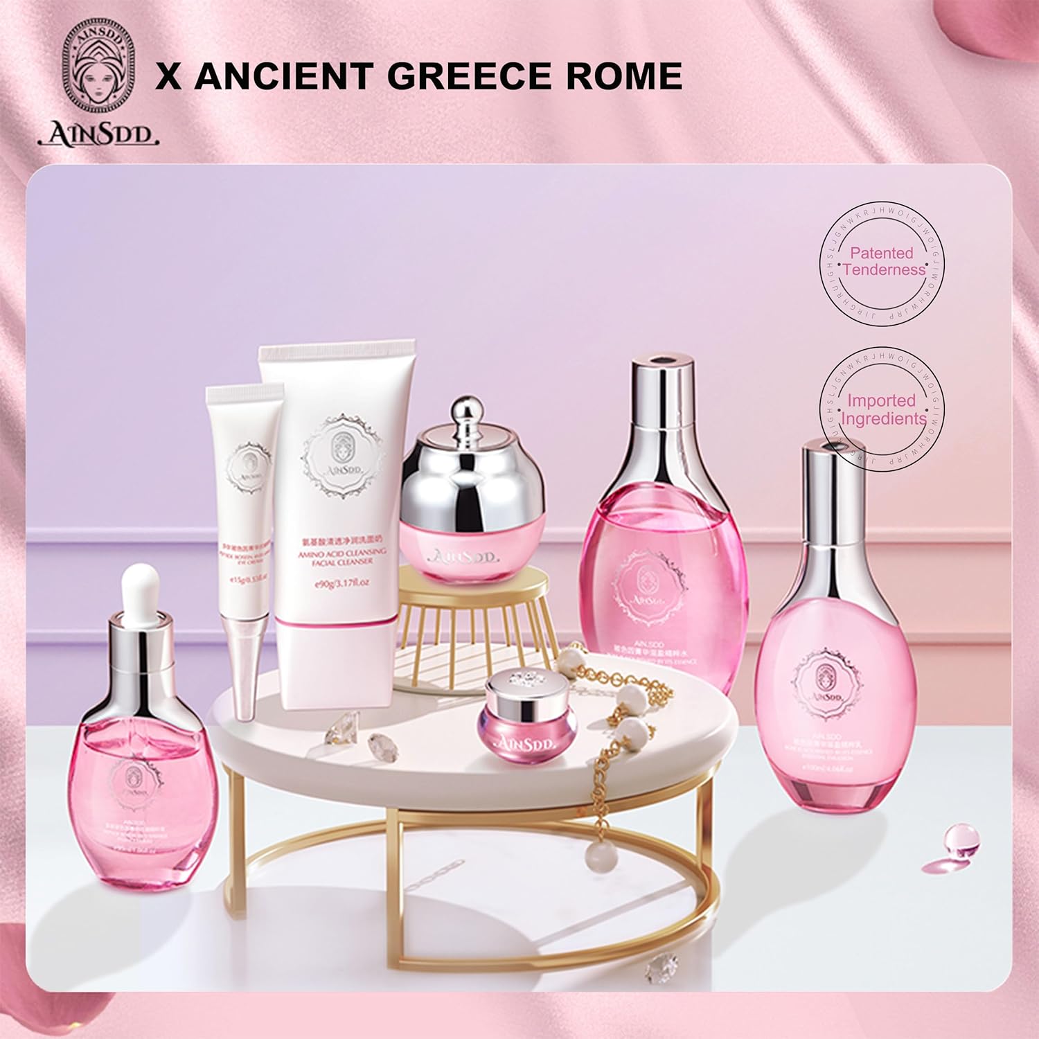 - 💖 There are seven parts in this set, including cleanser, toner, lotion, cream, serum and so on. Each one has its own unique efficacy and can be targeted to help you solve multiple facial skin problems at the same time. Whether it is lack of water, sensitivity, dullness or enlarged pores and other problems, it can be effectively improved.