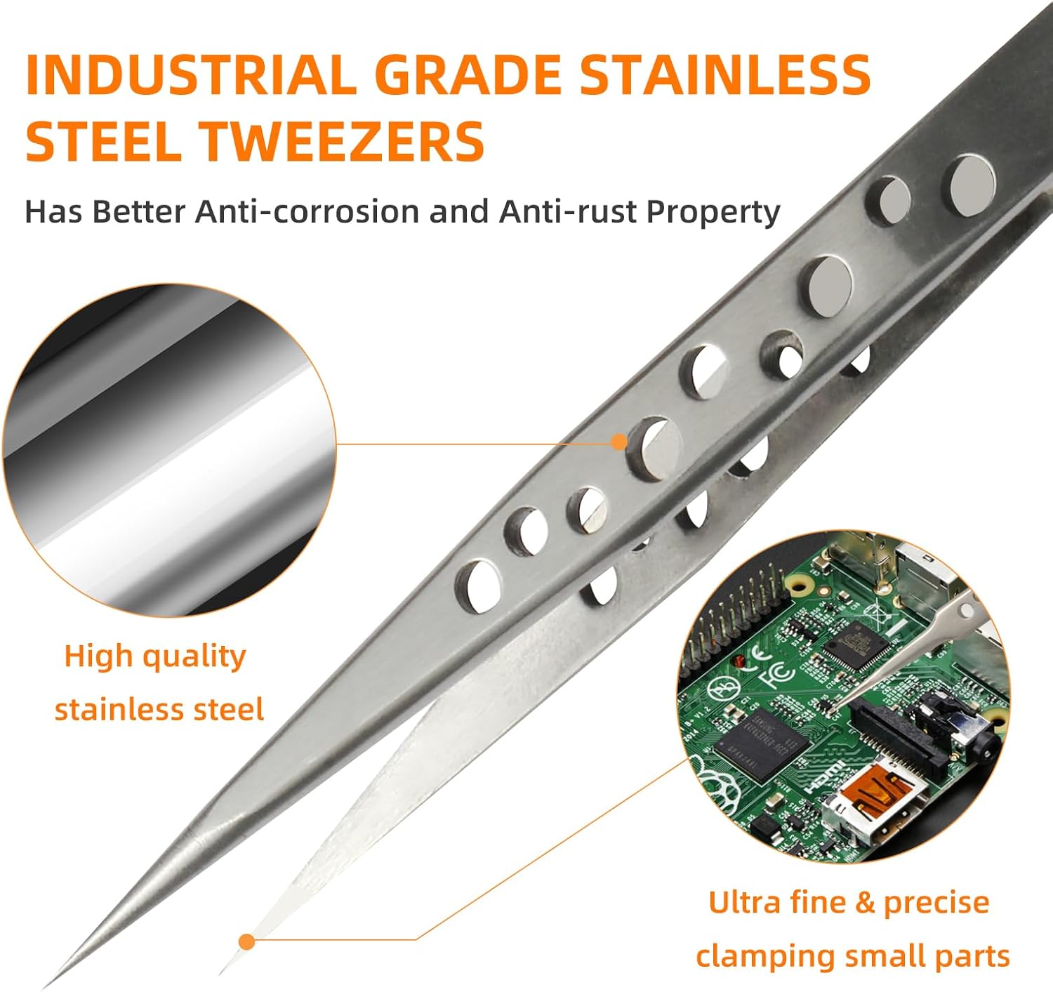 - ✔ Precision tweezer set made of high quality stainless steel, wear-resisting, rust protection, anti-corrosion; Frosted surface, nine-hole hollow design, anti-skid function. The teweezer tips are accurately aligned with anti-skid handle which can hold the tiny things precisely, making the effect better, give you a better feeling.