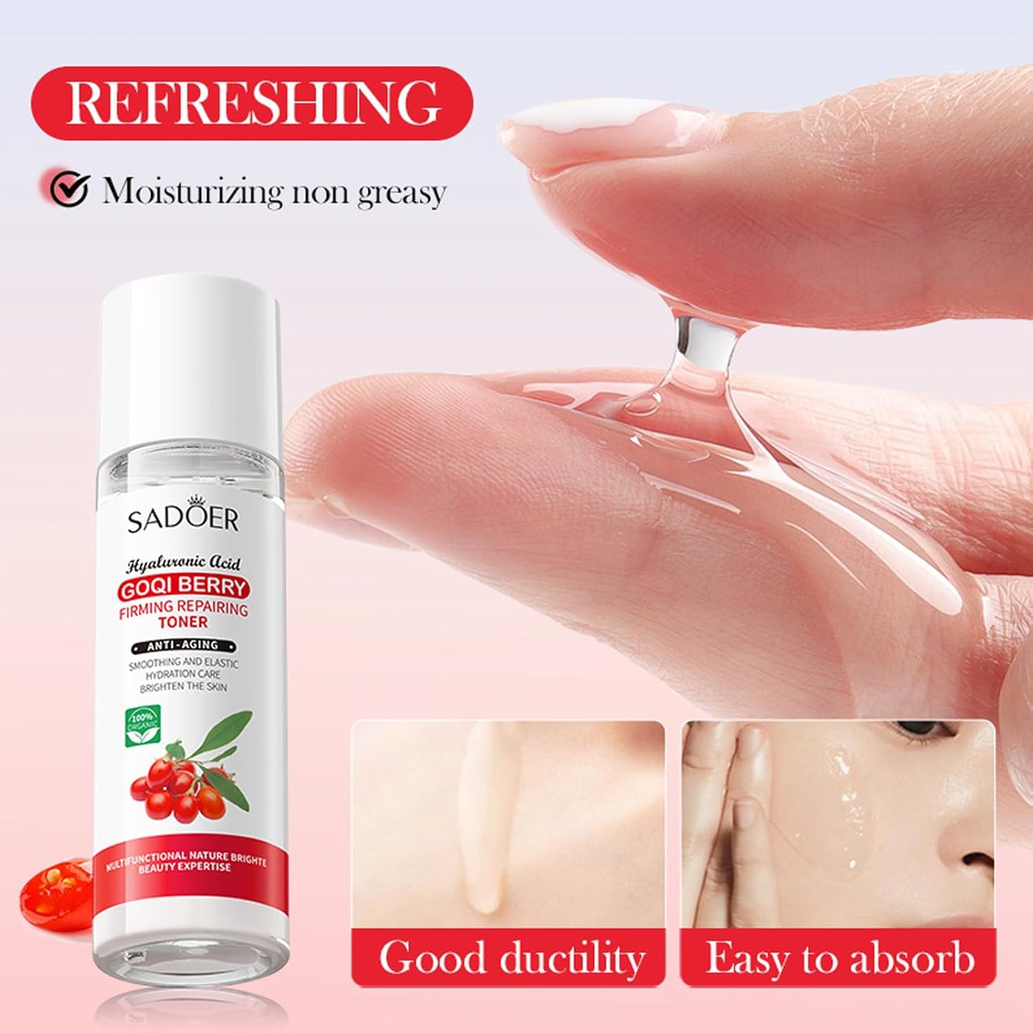 - 💗【For All Skin Type】- The facial skin care products has a light, moisturizing, and silky texture, which can be quickly absorbed without being greasy or clogging pores, relieving dryness and sensitivity of the skin. Whether you have oily or dry skin, or even sensitive skin, this goji berry skincare kit is a great choice.