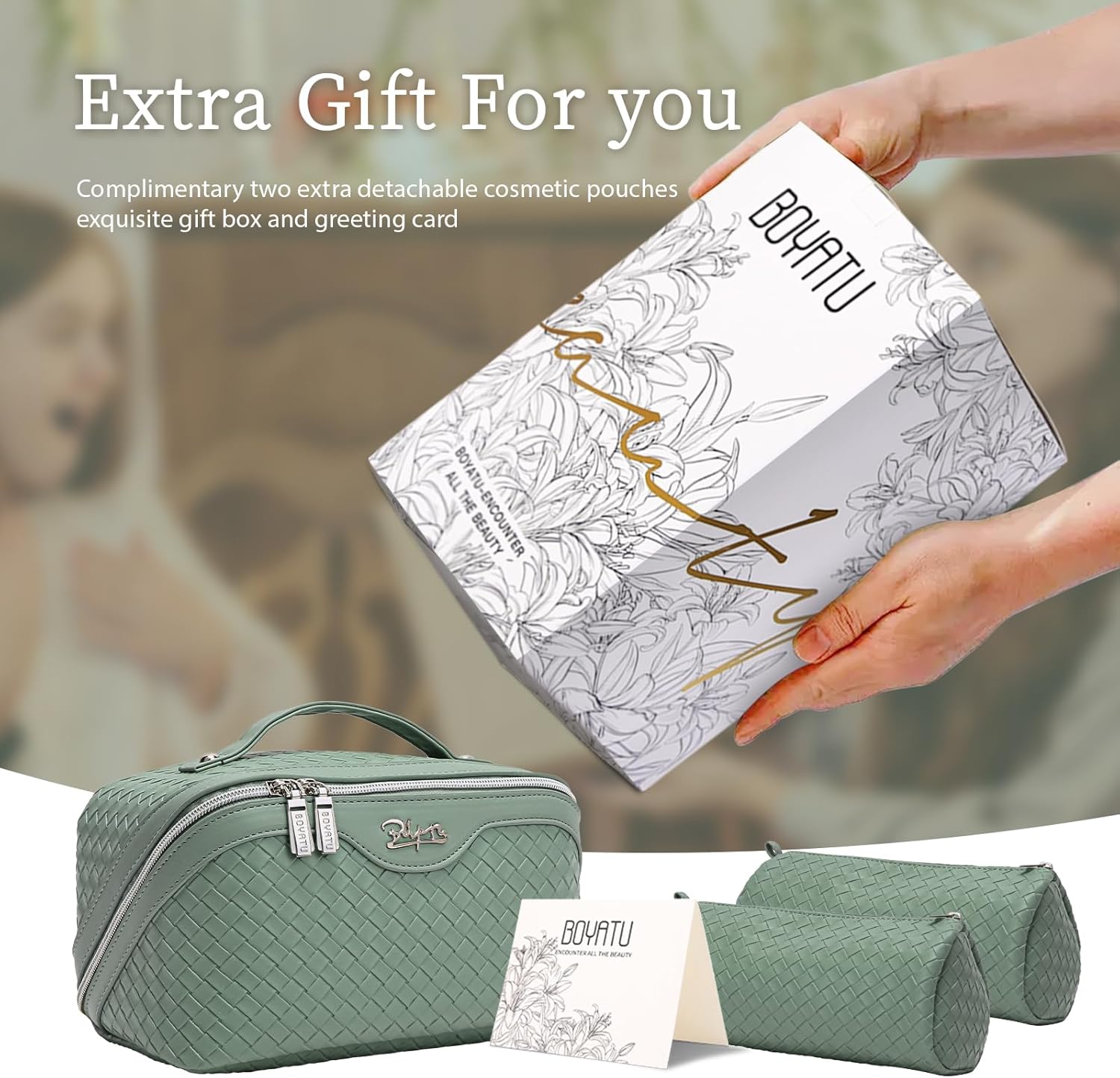 - Exquisite packaging: This travel make up bags for women comes beautifully packaged in an exquisite gift box, with a thoughtfully designed greeting card. It will be a great gift for ladies on Valentine's Day, Mother's Day, Birthdays, Christmas,Thanksgiving Day, Anniversary Day and more.