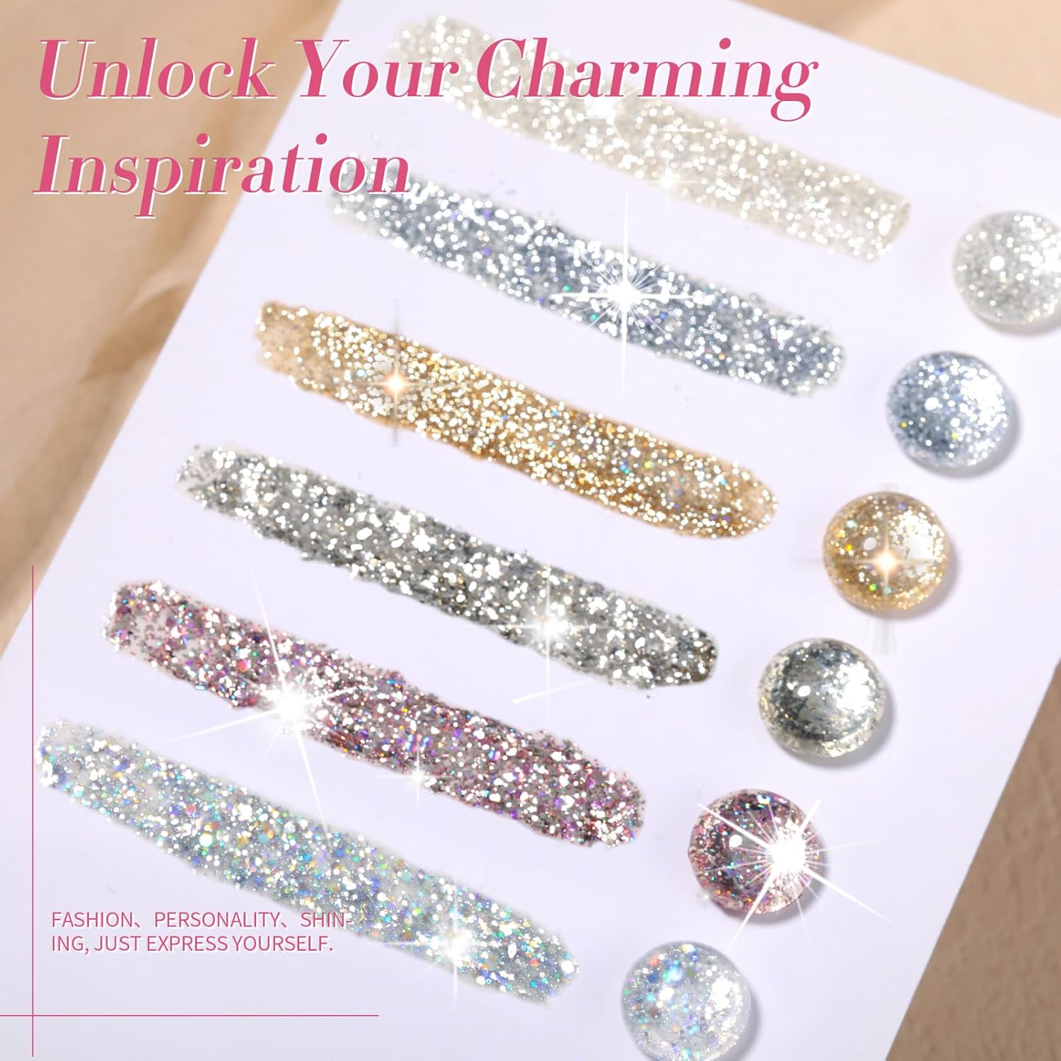 - PACKAGE CONTENTS:6 Bottles 7ml glitter gel polish.This super pigmented set with heavy glitter gel is a must have for every nail tech and DIY user!A full set of sparkly glitters to mix and match for any energetic spirit! Get your beauty manicure set on with the Shiny nail polish gel.