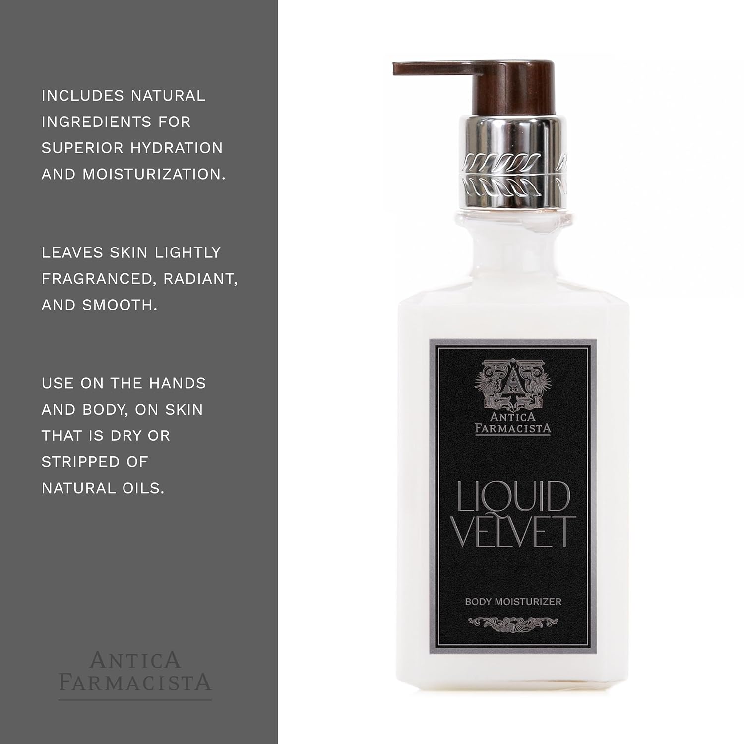 Antica Farmacista Body Moisturizer - Moisturizing Scented Lotion - Premium Body Moisturizer - Luxury Gift for Women & Men - Hand & Skin Hydration - Liquid Velvet, 10 Fl Oz