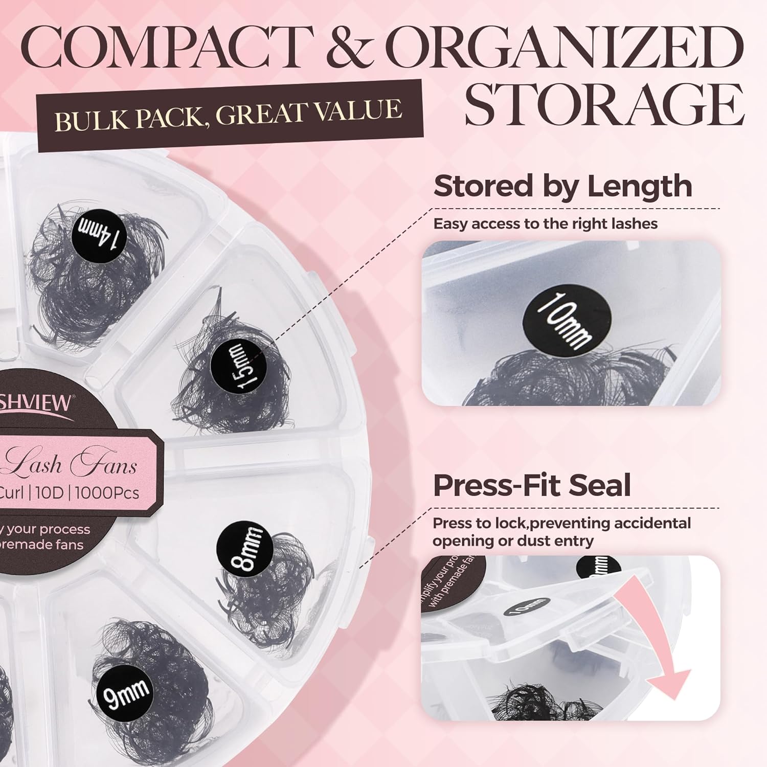 - Abundant Volume in Bulk: LASHVIEW premade lash fans are available in large quantities of 600 pcs and 1000 pcs, offering a more economical choice without compromising on quality