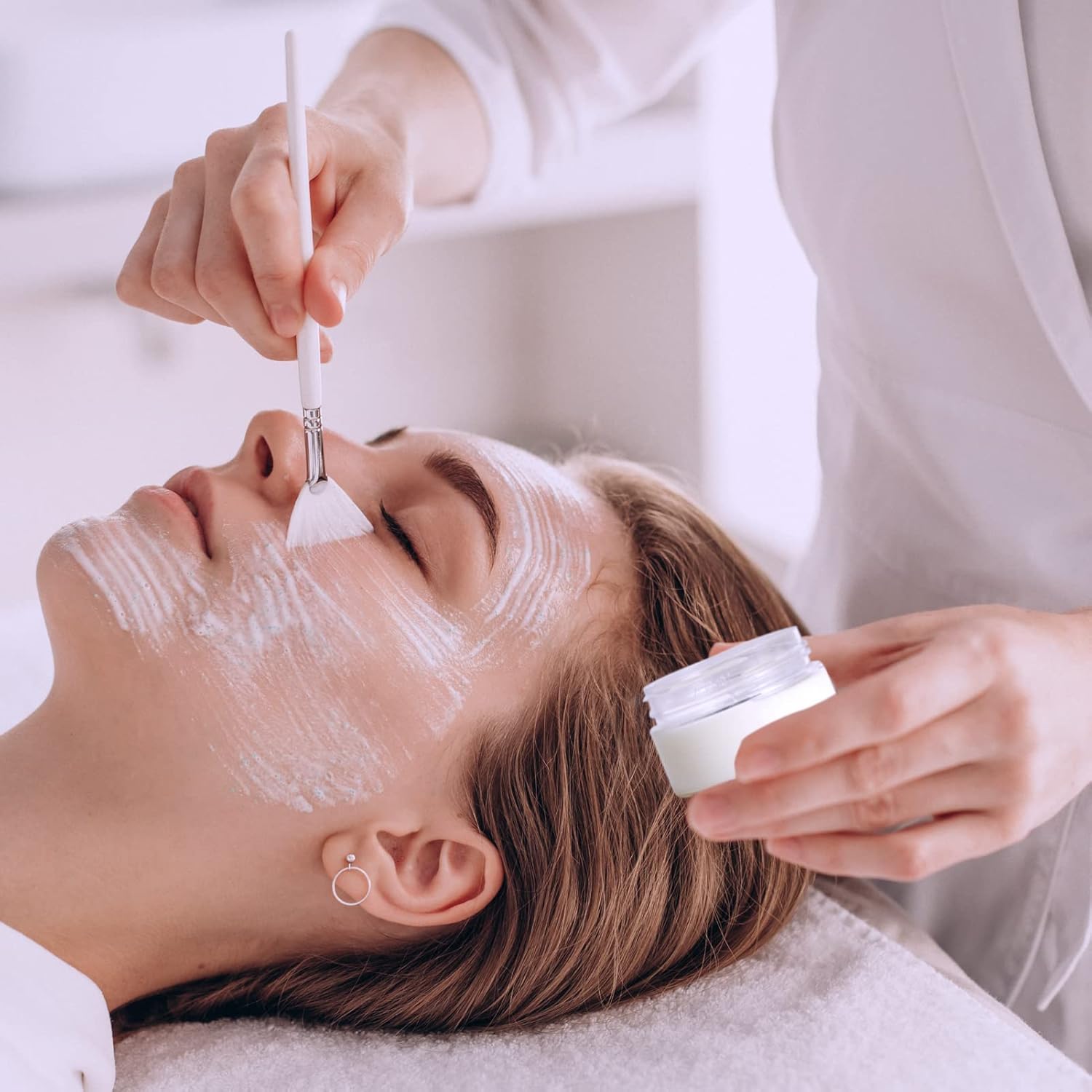50 Pack 2 OZ Plastic Jars Round Clear Cosmetic Container Jar with White Lids, Eternal Moment Plastic Slime Jars for Lotion, Cream, Ointments, Makeup, Eye shadow, Rhinestone, Samples, Travel Storage