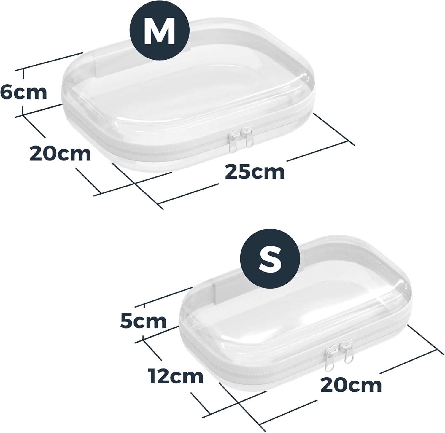 Extra Large 13.7" Durable Clear Hard Shell Zipper Case 6 Pack, 2x Large, 2x Medium, 2x Small, Clear Travel Makeup Case, Hard Plastic Travel Toiletry & Cosmetic Bag, Toy & Make Up Organizer Pouch
