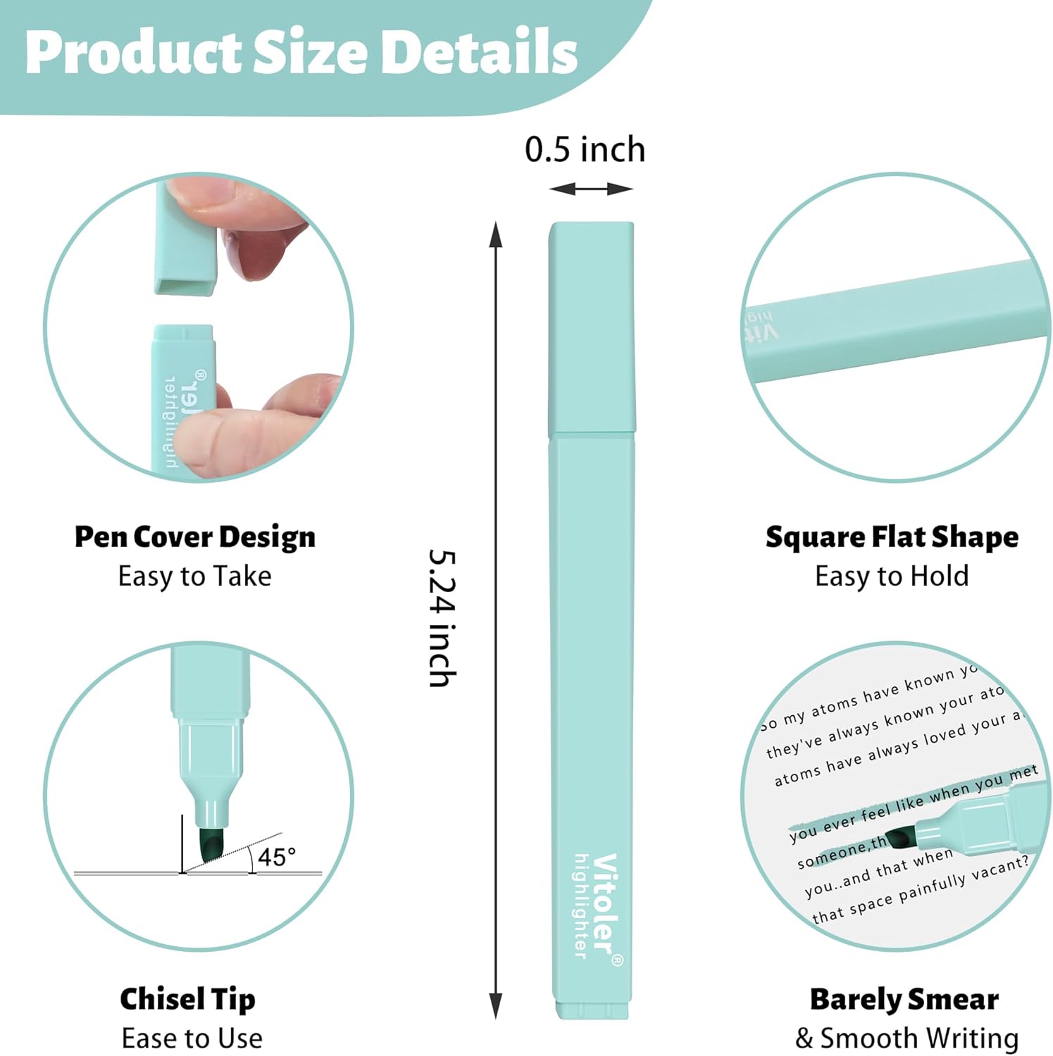 - Cute Pens Easy to Hold: The pastel highlighter is designed with square shape,it’s comfortable and easy to hold, without a sore hand and don't roll around while using.