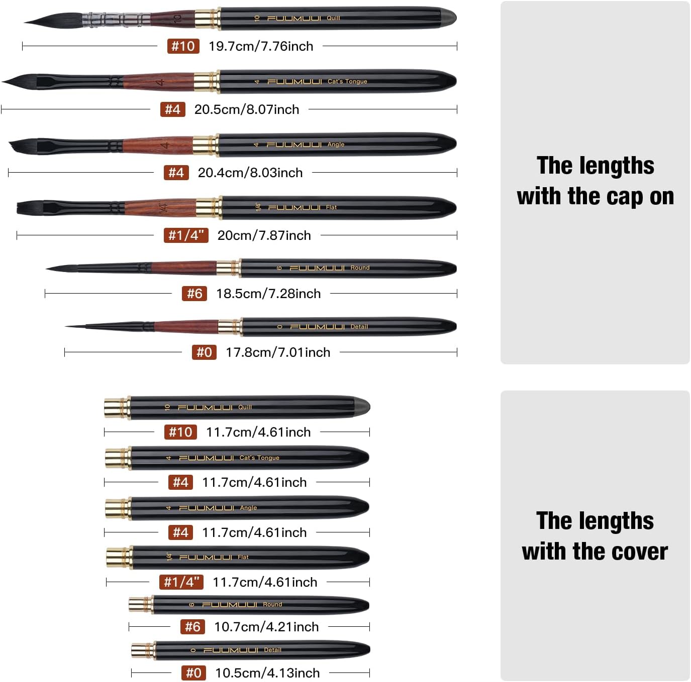 - Fuumuui's high-end squirrel hair travel brushes offer a wide range shapes ( Detial, Round, Flat, Angle, Cat's Tongue ) so you can paint from long, thin lines to large areas with ease. For any level of talent or interest, you will surely enjoy this upgraded travel brush.