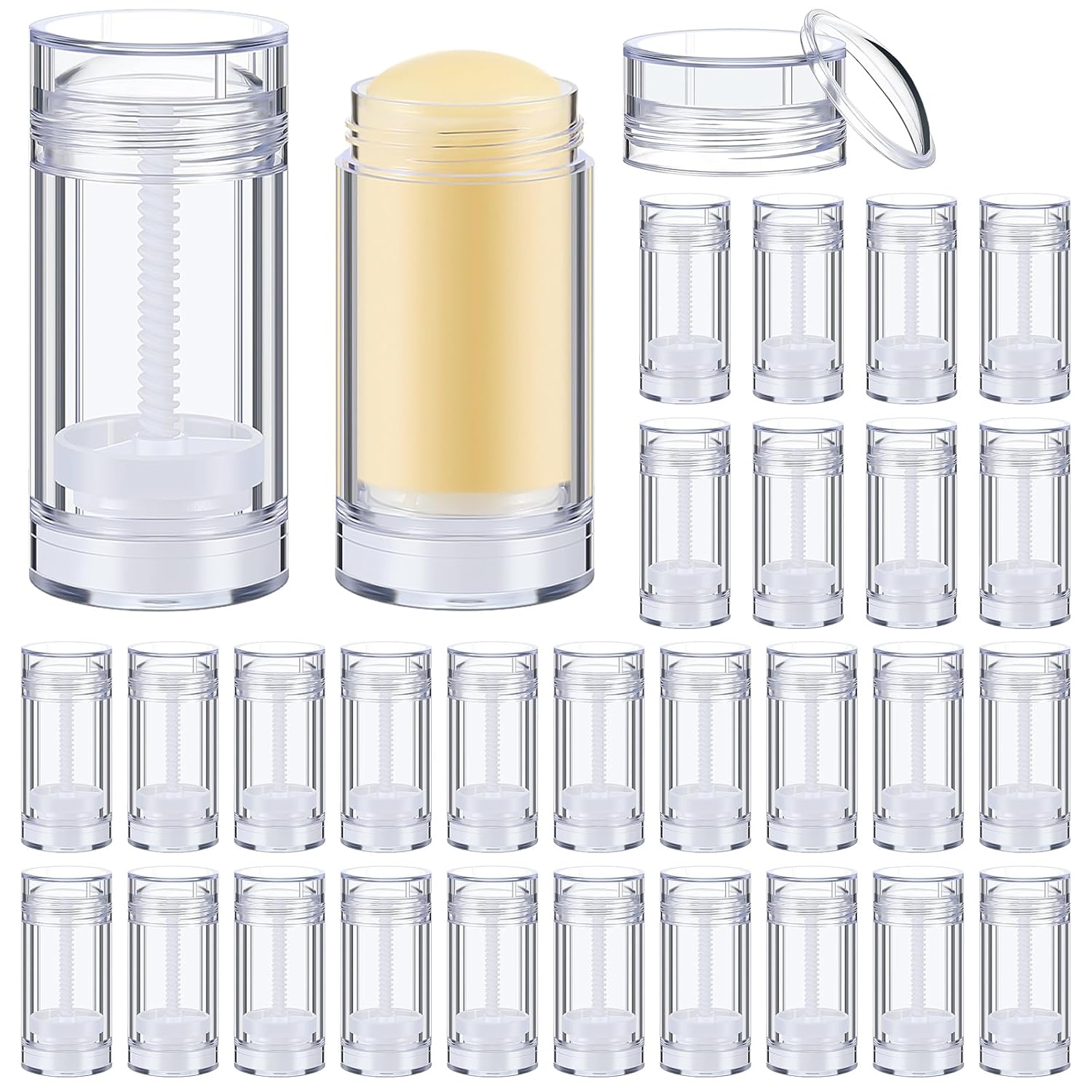 30 Pcs Empty Deodorant Containers Twist up Filling Stick Plastic Deodorant Container Refillable Bottles Bottomfill Round Lip Balm Tubes for Homemade DIY Lipstick Crayon(15 ml,Clear)