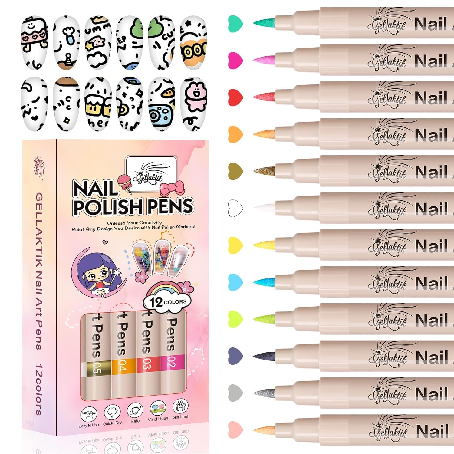- 【Nail Art Pens Set】This Acrylic Paint Pens set comes with 12 vibrant colors to choose from, meeting your daily needs and allowing you to create a variety of styles. It’s an essential Manicure Tool for achieving salon-level nail art at home.