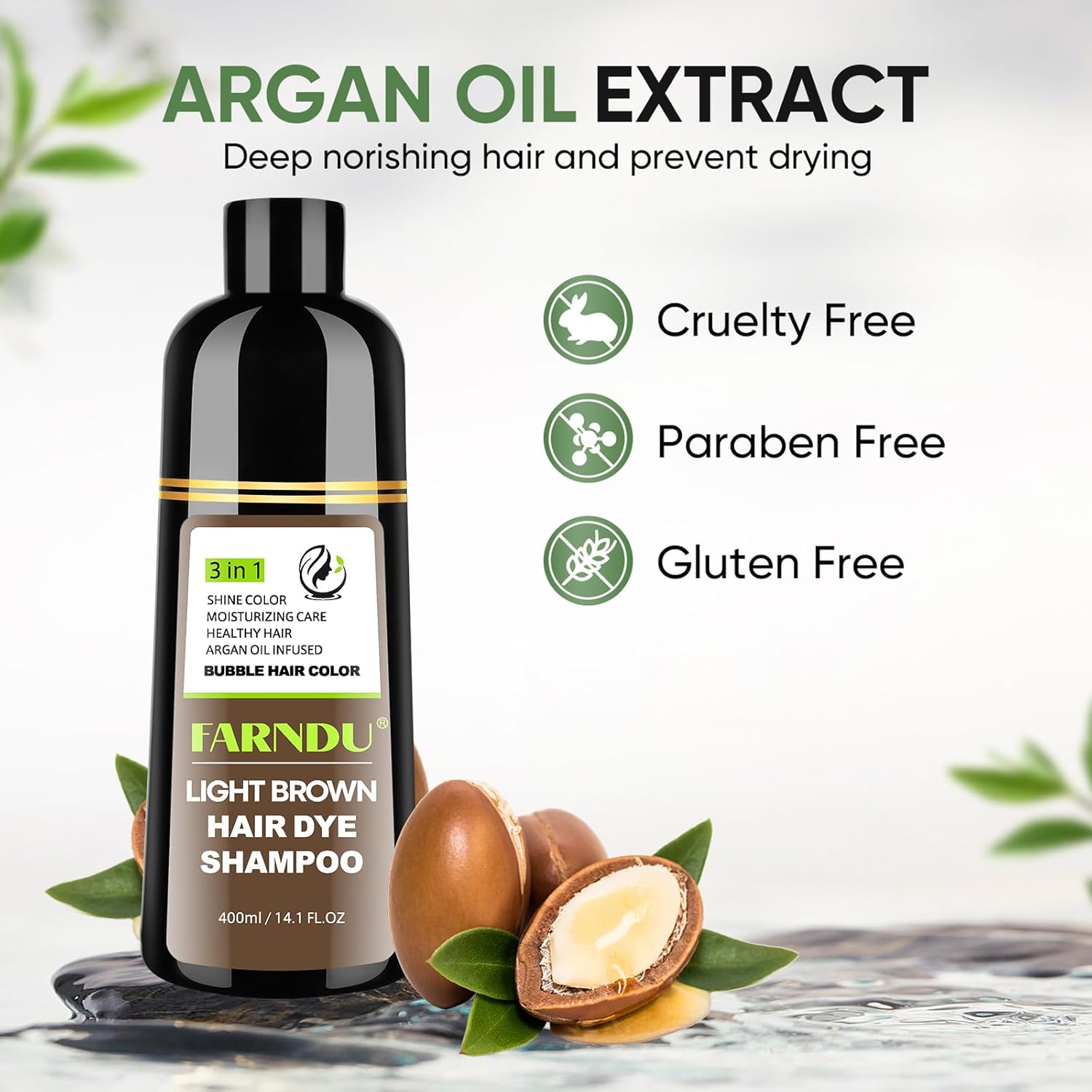 - 100% Gary Hair Coverage : Say good bye to gray hairs. Our light brown hair dye shampoo covers 100% of gray hair. With this hair color shampoo restore your hair to its youthful luster and charm.