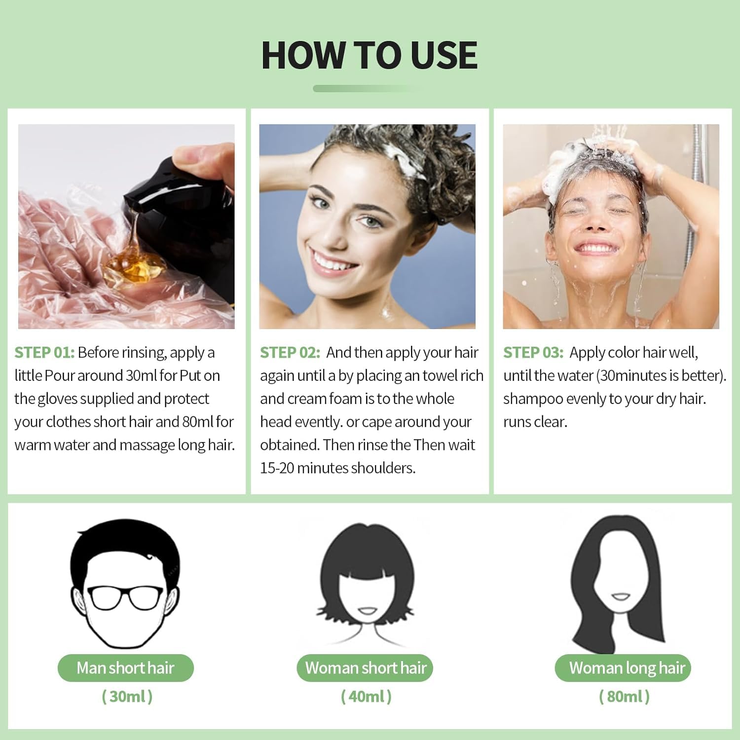 - Easy To Use & Time-Saving - It only takes 15-20 minutes! No need to worry about messy application or uneven color - our 3-in-1 hair coloring shampoo takes the guesswork out of at-home hair coloring. Our shampoo formula makes it easy to apply and evenly distribute color, so you can achieve a salon-quality look without leaving your home.