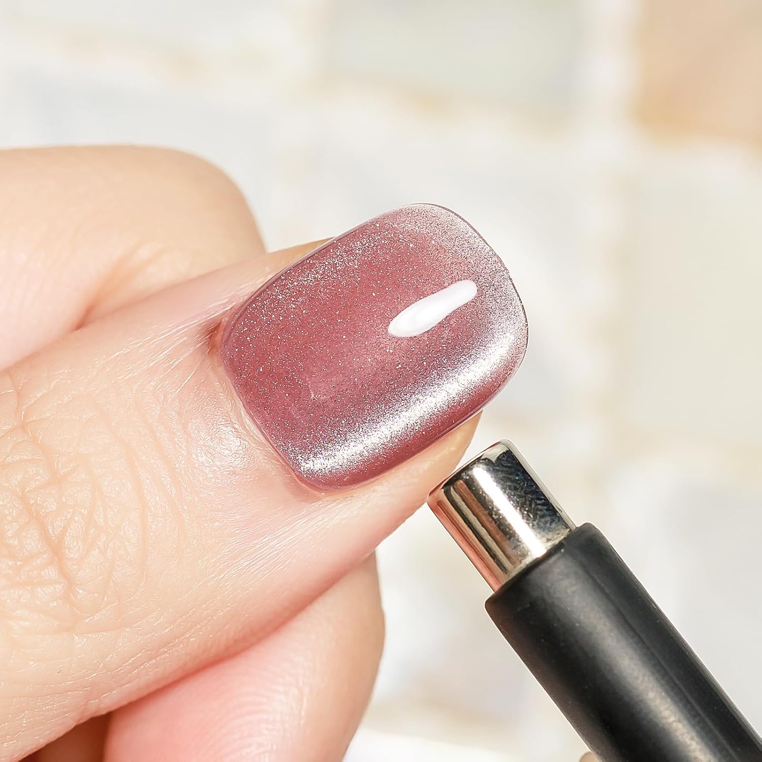 - Smoothie Cat Eye Gel Polish: 1*15ml(0.5fl oz) light pink cat eye gel nail polish with 1PC magnetic stick. Mixed with smoothie magnetic glitter, it's perfect for making a statement