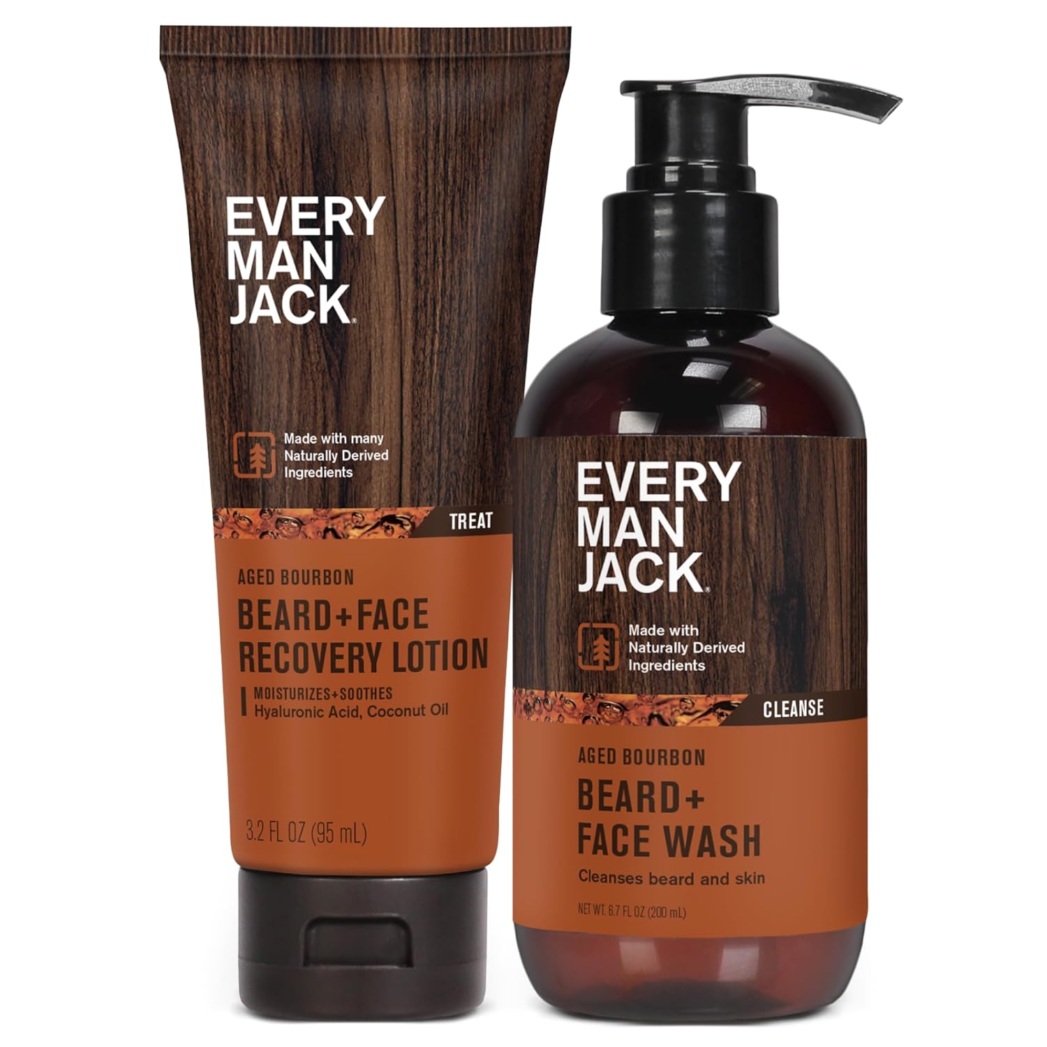 Every Man Jack Men's Beard + Face Wash & Lotion Set - Subtle Aged Bourbon Scent - Naturally Cleanse and Condition Your Beard & Skin