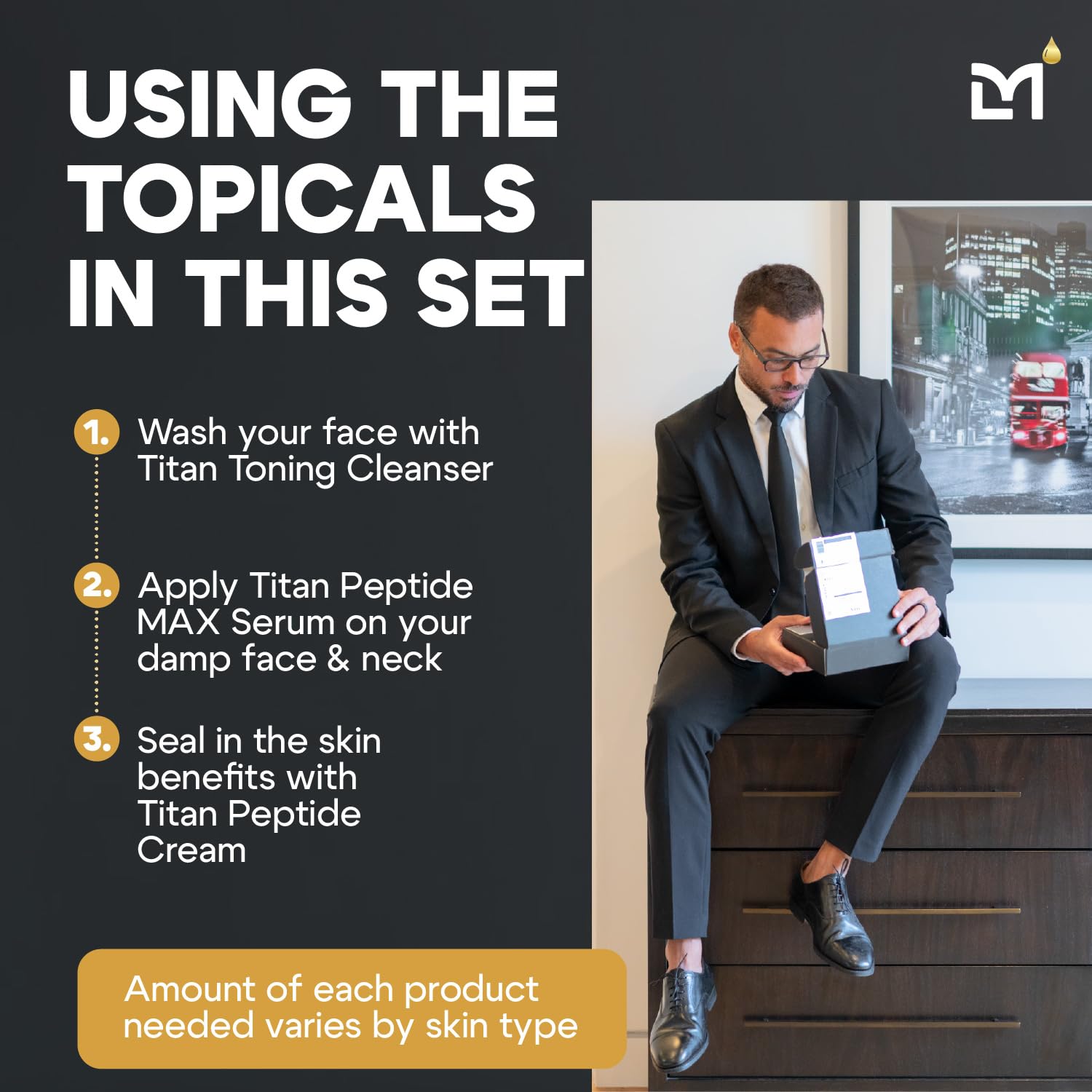 - How Leading Men Looked So Good on Screen: This anti-aging men's face care kit features the Titan Toning Cleanser, Titan Peptide MAX Serum, and Titan Peptide Cream; This is the exact men's skincare kit spotted in celebrity grooming stations at the 2025 Golden Globes