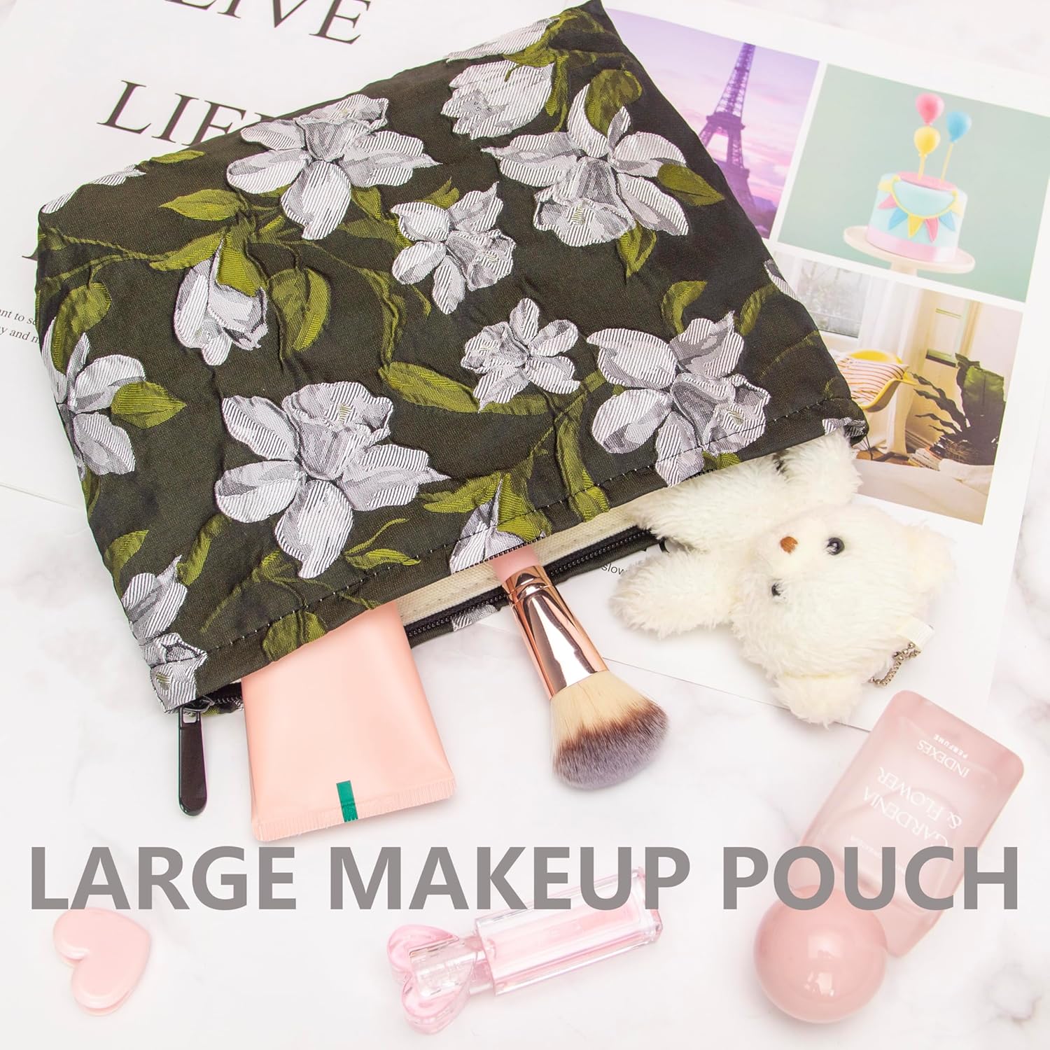 - Multi-Purpose:Use this sturdy pouch to easily pack and carry makeup,jewelry,beauty items,brushes,pencils,small electronic accessories,toiletries,essential oils,medcine,tools or other travel essentials.This cosmetic pouch is the perfect balance between funchtion and style.
