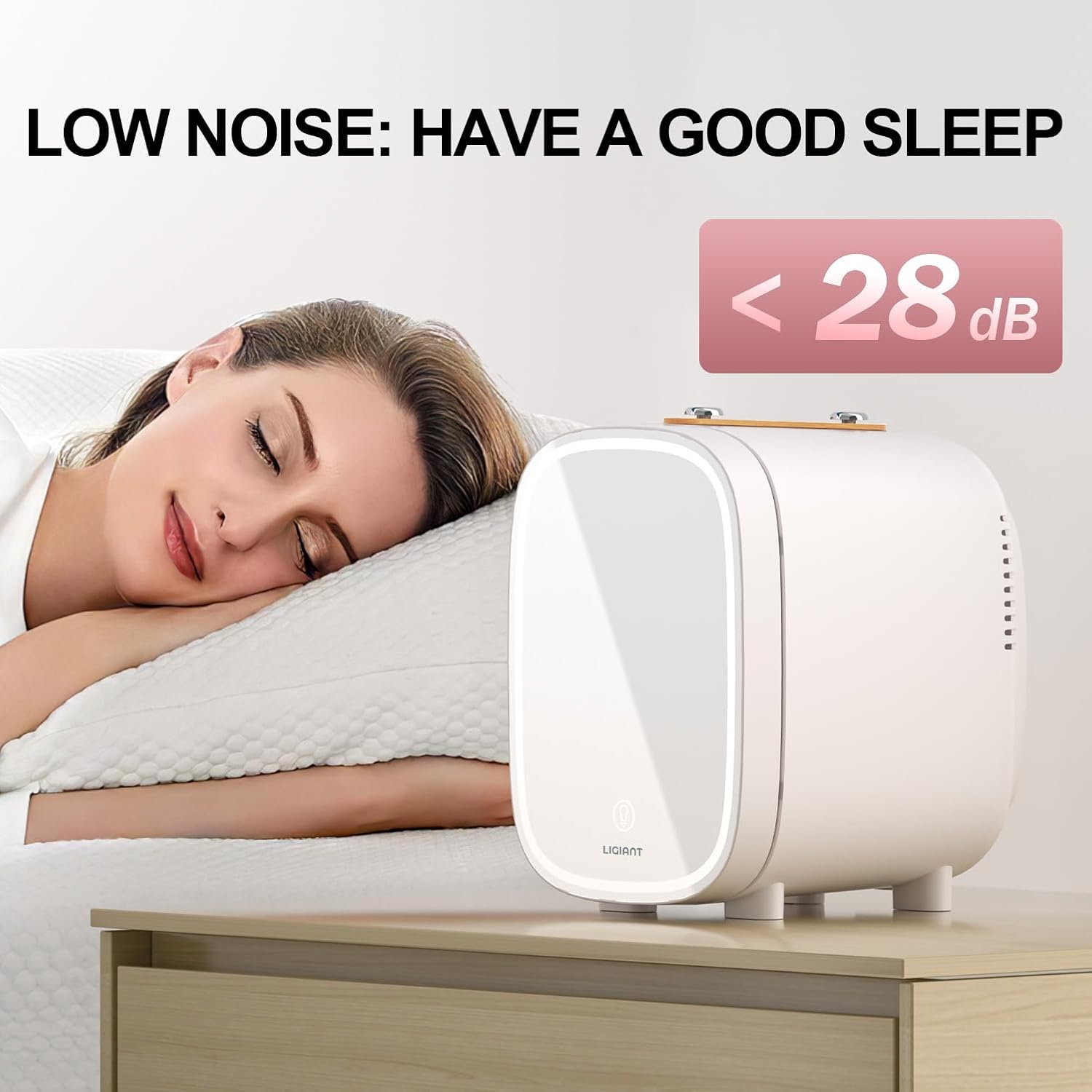 - Low Noise: With advanced noise reduction, the beauty refrigerator runs at just 25dB, ensuring quiet operation. It offers a peaceful environment for your skincare and makeup routine whether it's in the bedroom, car, or office.