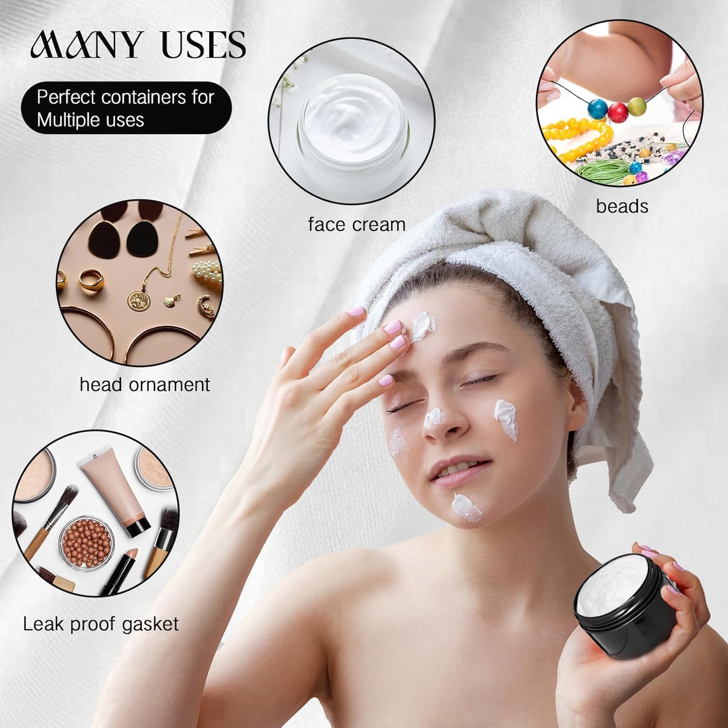 SATINIOR 24 Pieces Empty Clear Plastic Jars with Lids Round Storage Containers Wide Mouth for Beauty Product Cosmetic Cream Lotion Liquid Butter Craft and Food(Black,1 oz)