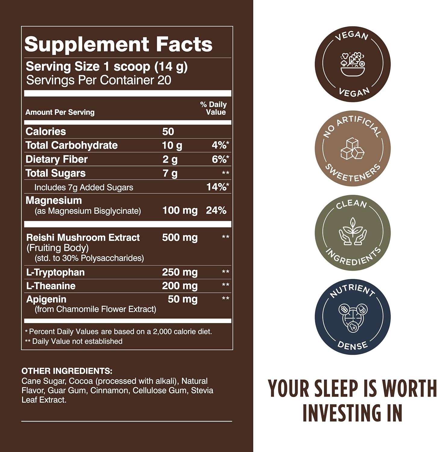 Calm Evening Tonic Sleep Powder - Cinnamon‑Cocoa Nighttime Superfood Drink Mix - Magnesium, L‑Theanine, Reishi Mushroom & L‑Tryptophan for Deep Sleep & Recovery, No Grogginess - 20 Servings