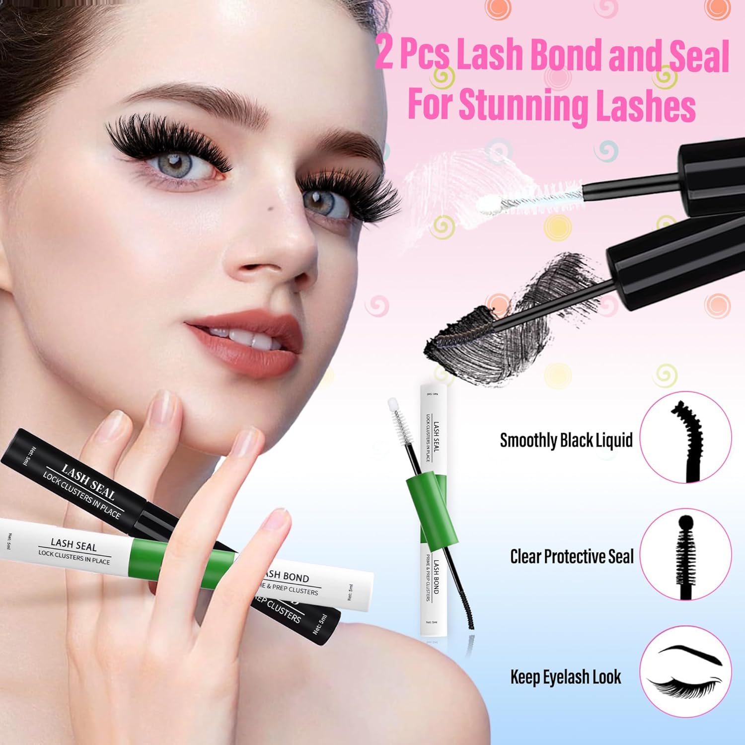 - 【Upgraded 2-Step Lash Bond & Seal - 72-Hr Wear】Innovative dual-ended design! BOND to apply clusters securely, then SEAL to lock in your look.Upgraded formula is gentle, latex-free, non-irritating, and dries clear with no clumping or smudging for smudge-proof confidence all day & night (up to 72 hrs)