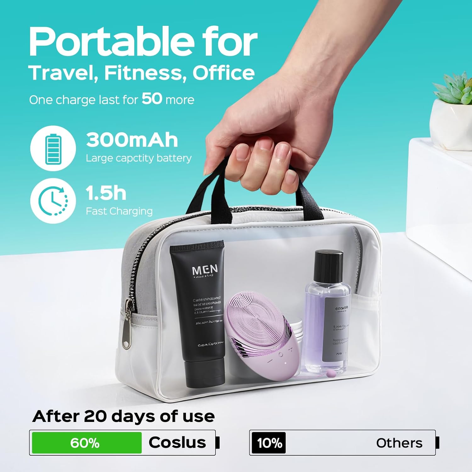 - Waterproof and Travel-Ready for Active Lifestyles: Built with an IPX7 waterproof rating, the COSLUS face scrubber is safe to use in the shower or at the sink. Its compact and cordless design fits easily in your gym bag or carry-on, making it the ideal companion for frequent travelers, business professionals, or backpackers on the go. Whether you're prepping your skin before a meeting or refreshing it after a long flight, this portable Face Scrubber supports consistent deep cleansing and massage benefits, helping your skin stay refreshed anywhere—even on the road