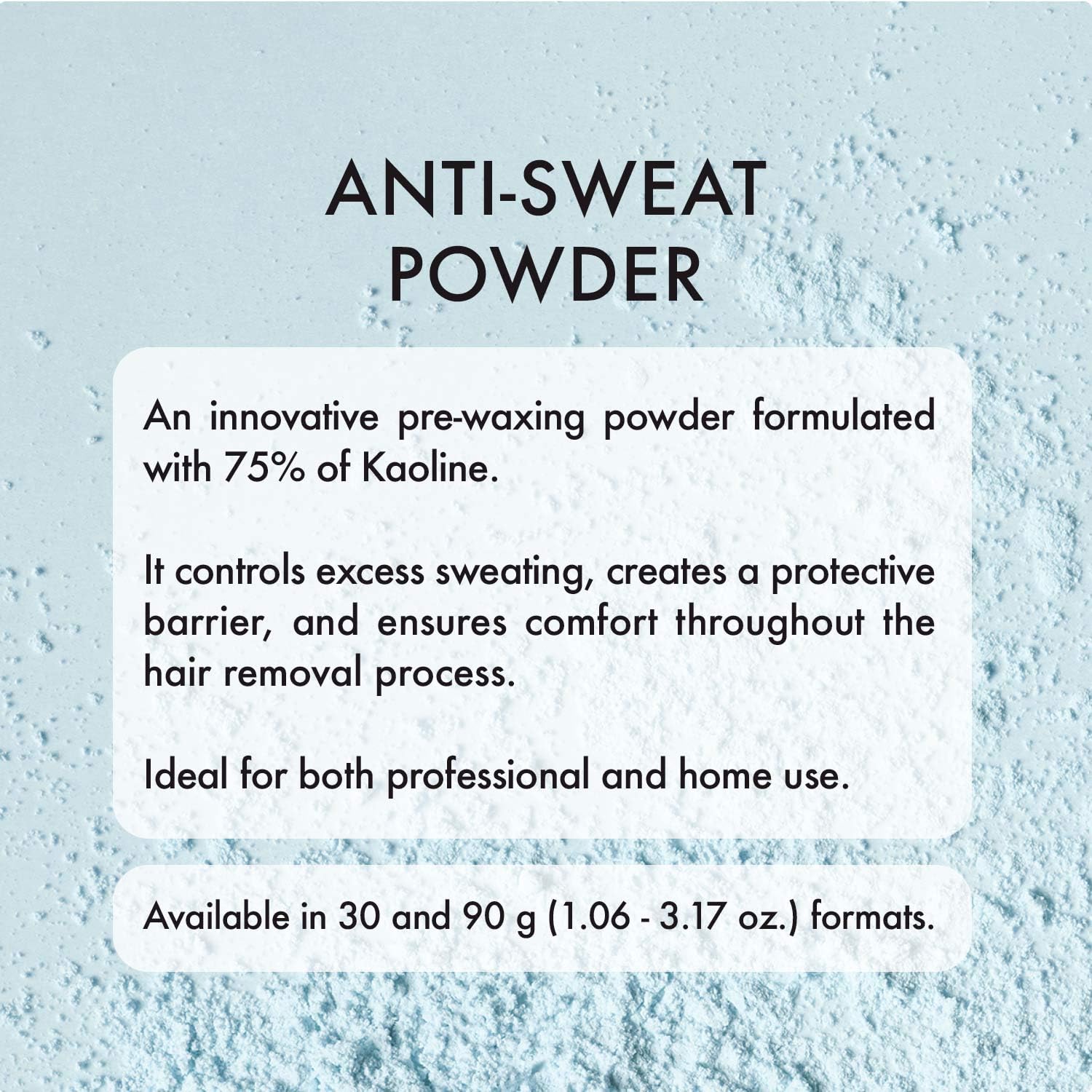- PREPARES SKIN FOR WAXING – Absorbs excess moisture and creates a protective barrier, enhancing wax adhesion and ensuring more precise, longer-lasting results.