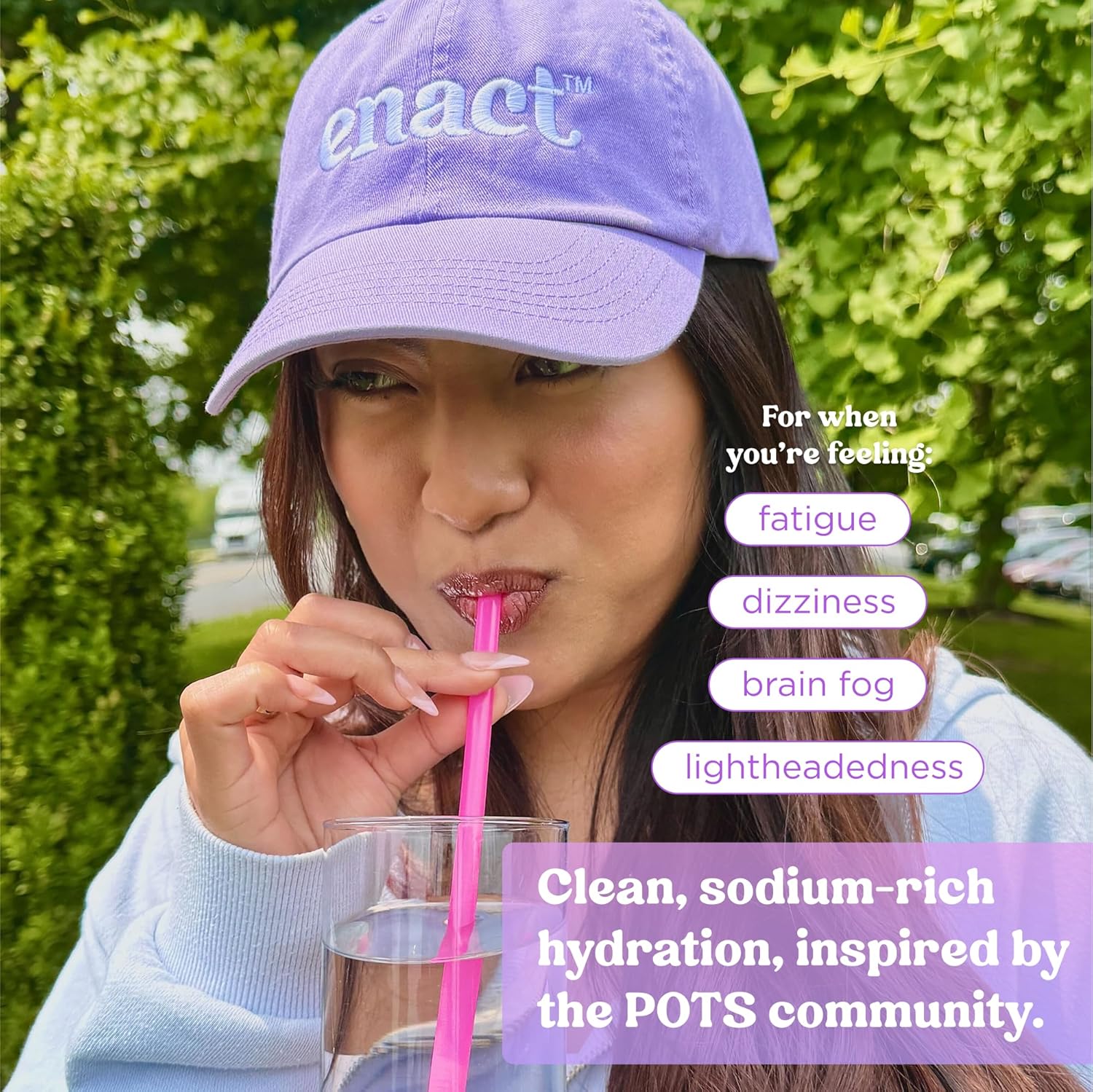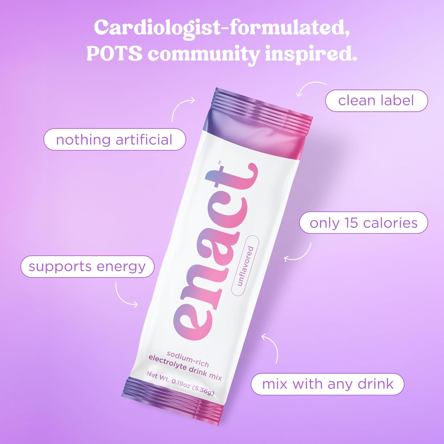 - WE’RE HERE FOR YOU. You deserve a hydration formula that truly supports you. If Enact POTS electrolyte drinks don’t help you feel stronger, steadier, and more energized, we’re here to help—no questions asked. Taste Note: You may notice the salt taste – that's the 600mg of sodium working to support your body. This is intentional and a sign that Enact is providing the electrolytes you need.