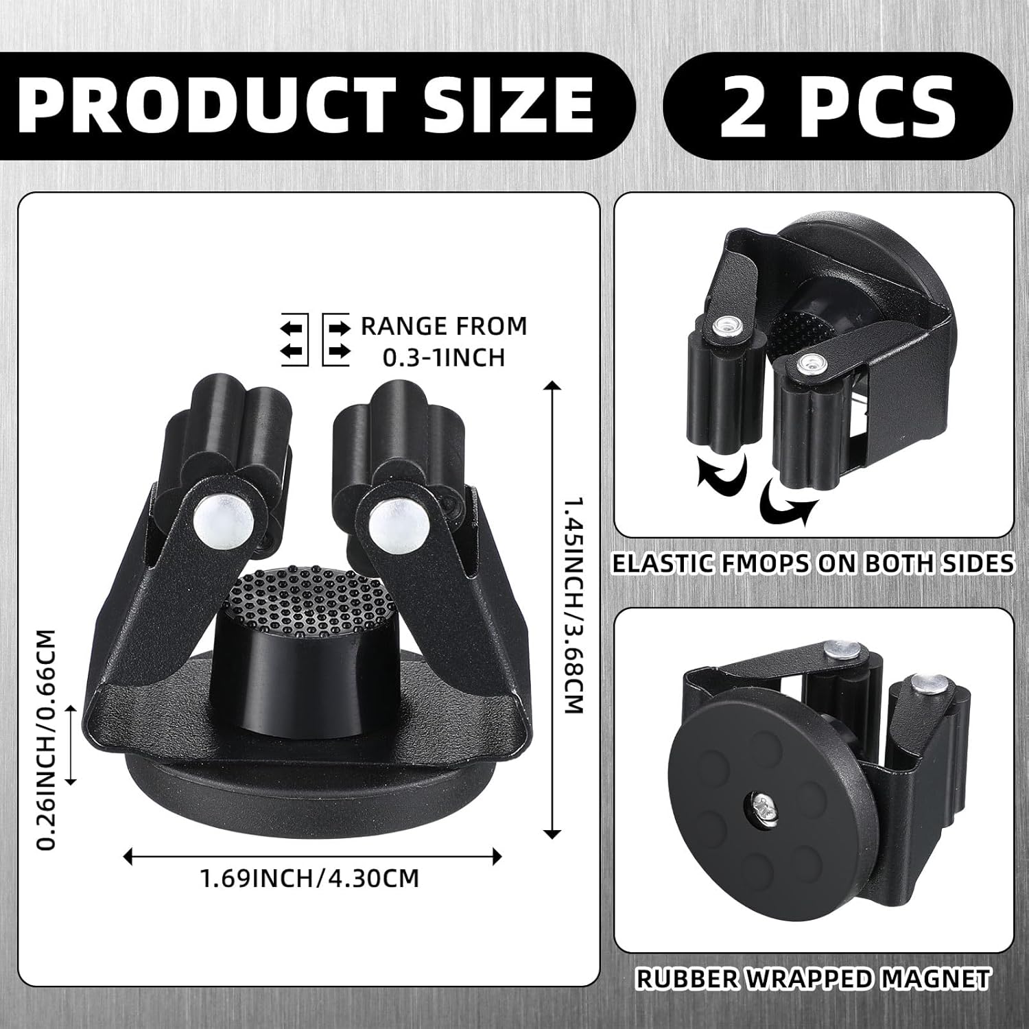 2 Pcs Magnetic Mop Broom Holder Movable Magnetic Broom Holder Rack, Anti Slip Wall Mounted Utility for Cleaning Tools, Garage, Kitchen, Laundry, Garden (Black)