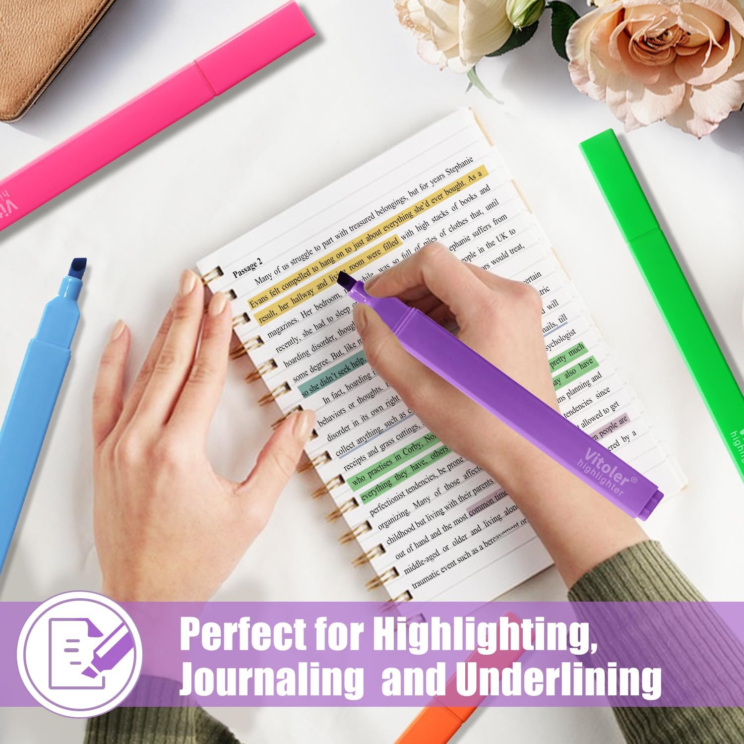- Piochoo Highlighters Assorted Colors,Make your notes and papers pop with our vibrant highlighters! This package includes 8 highlighters in 8 bright assorted colors. Our highlighters are perfect for making your work and school life a little bit brighter.
