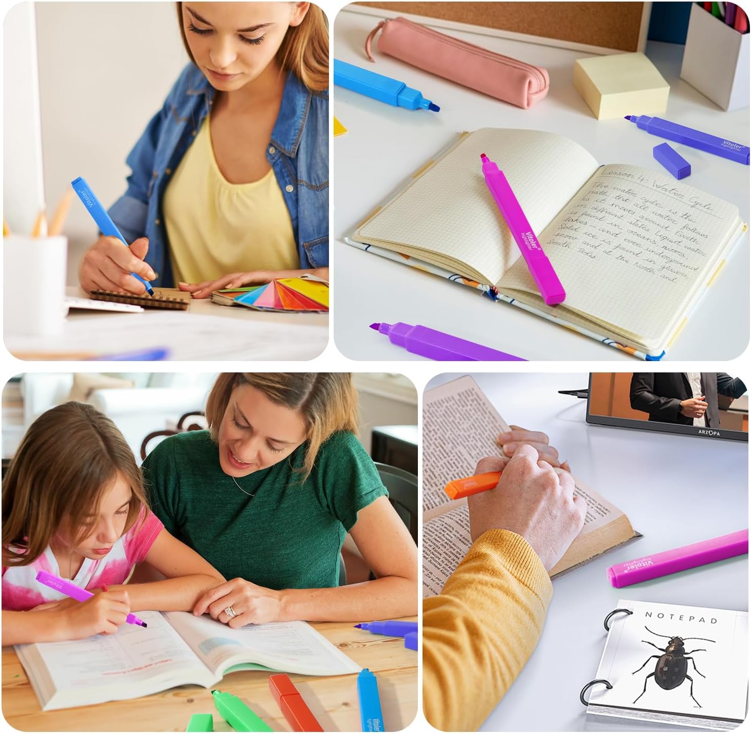 - Multi- Applications & Great Gift:The highlighters package is a great choice for school supplies or office supplies,also suitable for college, home, office, even travel diary, schedule, work, study, notes, etc. These aesthetic highlighters are also wonderful gifts for teachers, classmates, bosses, coworkers and so on