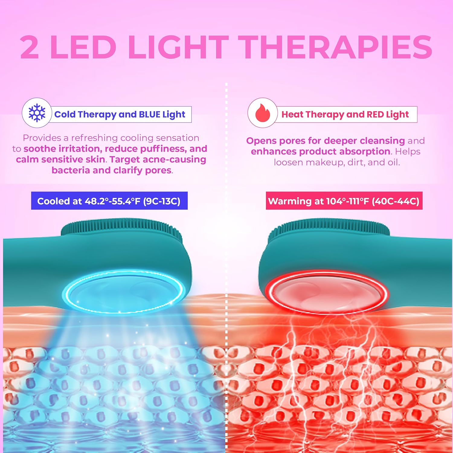 - Dual-Sided Design for 2-in-1 Skincare - Get the best of both worlds with the RIKI LOVES Silicone Facial scrubber. One side features fine, soft silicone bristles (in two sizes) for deep cleansing and gentle exfoliation. The other side delivers Heating, Cold Compress, and LED light therapy for a soothing spa experience—all in one stylish device.