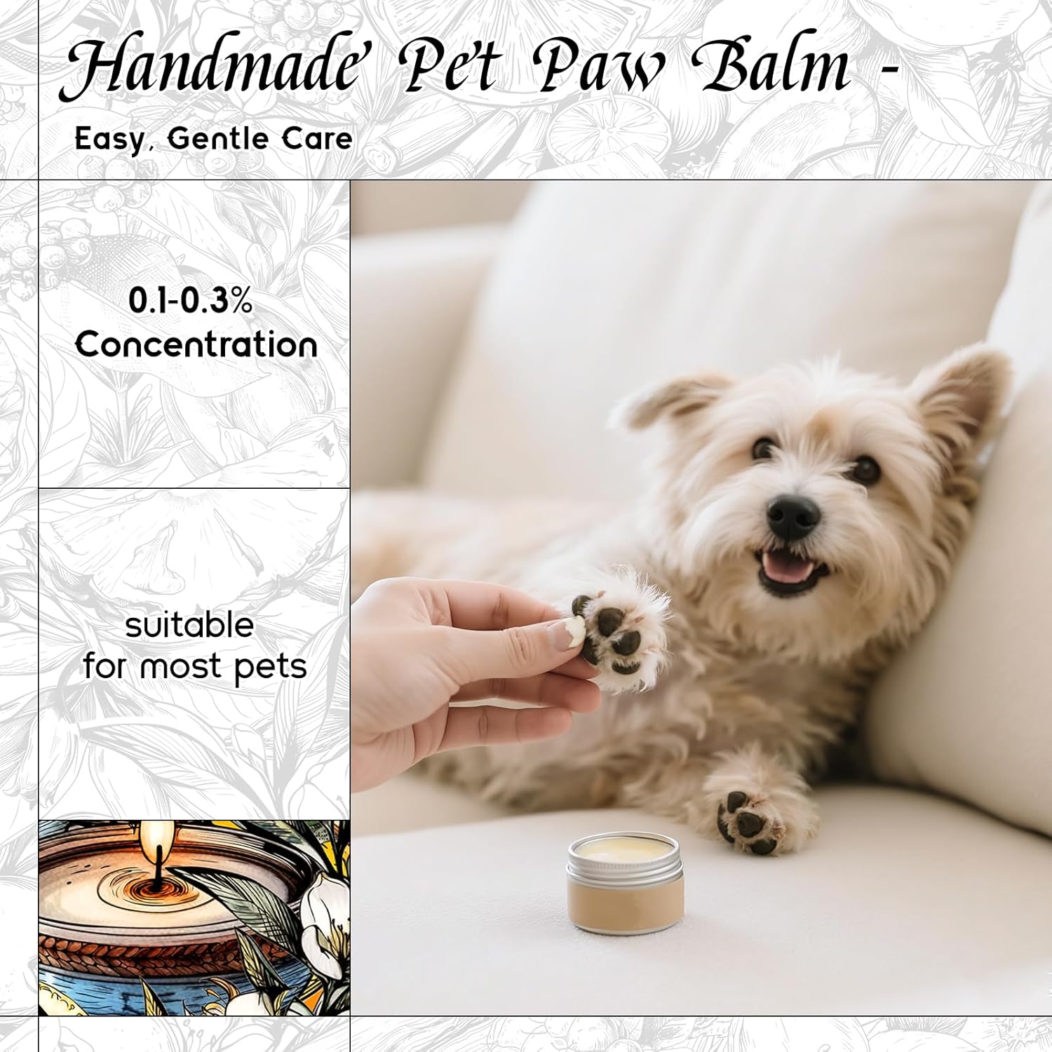 - Pet-Safe Formula for Gentle Care – Ideal for pet paw balms, shampoos, or sprays when diluted. Gentle enough for dogs and cats, free from harsh chemicals