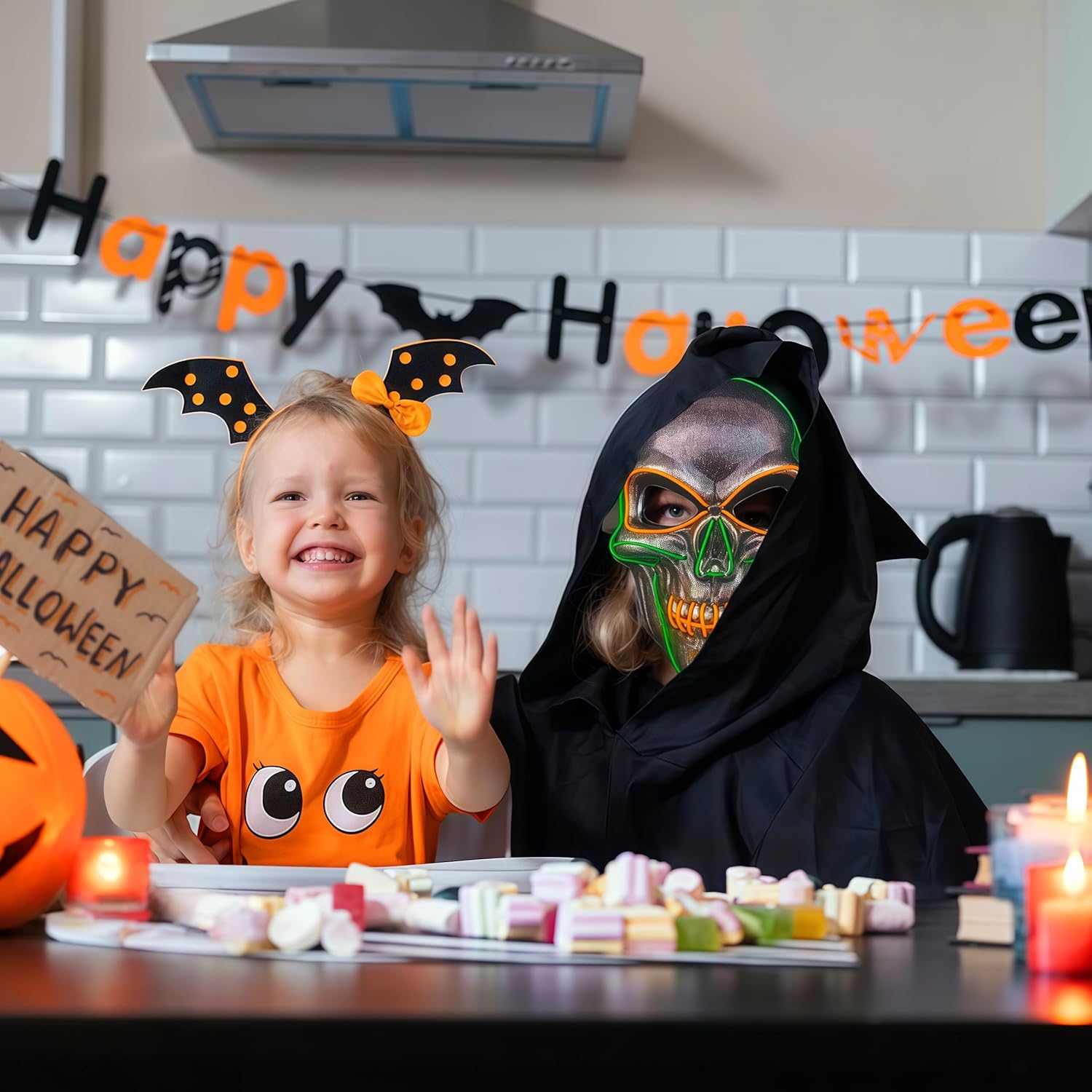 OceanWings Halloween Mask LED Light up Costumes Scary Mask for Party Supplies Favor