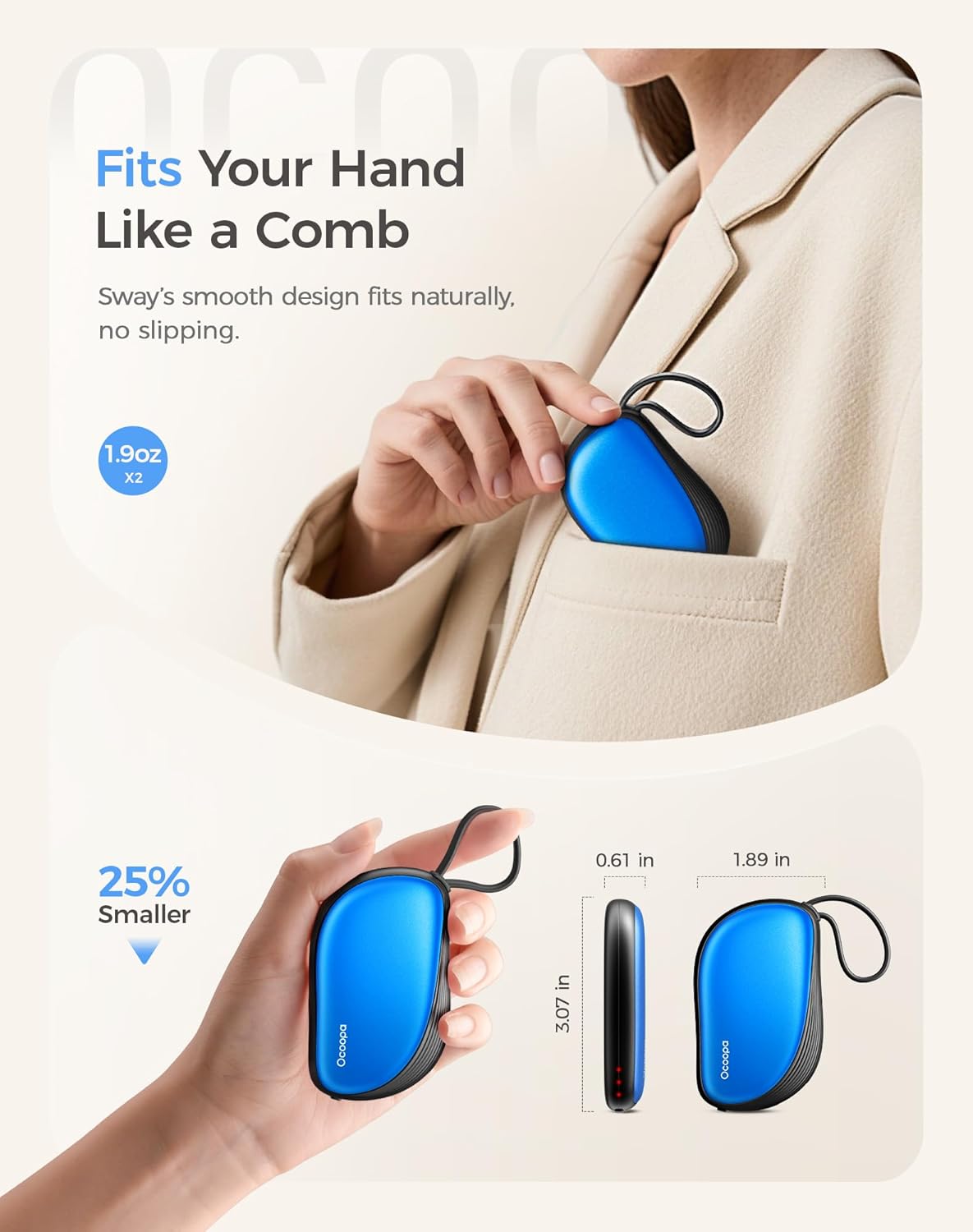 OCOOPA Hand Warmers Rechargeable 2 Pack, Ultra Slim Electric Hand Warmers, Portable Pocket Heater, Comb-Inspired, Fits in Gloves,UL Certified, Winter Essentials,UT5 Sway