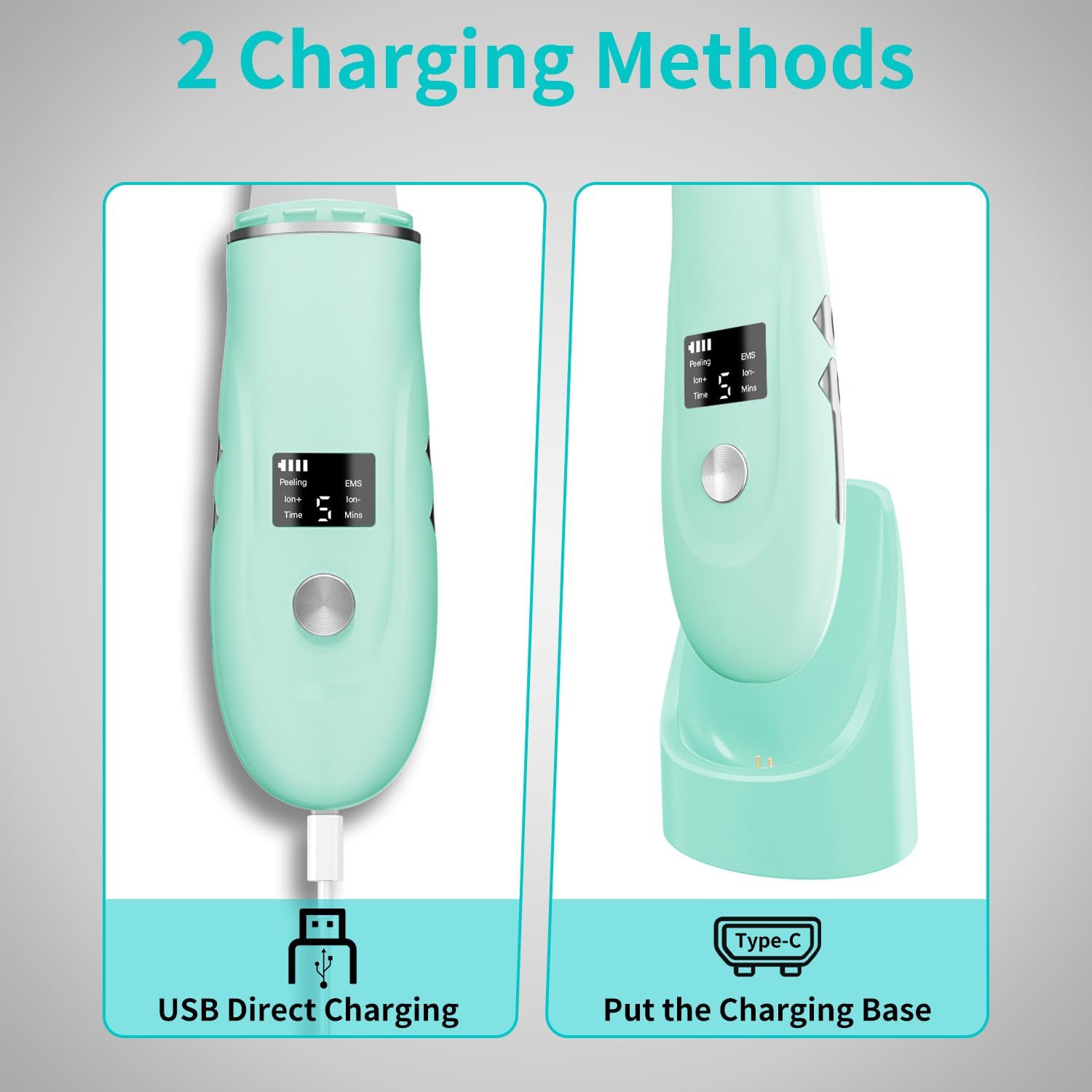 - 【Dual Charging Options & LED Display】Charge the spatula either on its base or directly via USB. The LED display shows battery life and operational mode, giving you the flexibility you need for your skincare routine. (Note: For safety, do not use while charging.)