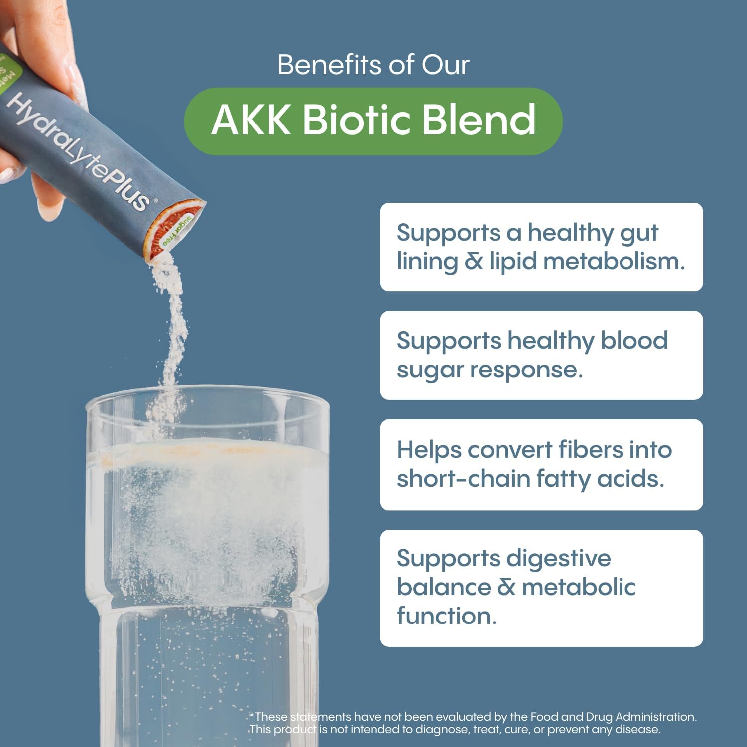 Hydralyte Plus Metabolic Support - Sugar-Free Electrolytes + Akkermansia Probiotic for Women and Men - Blend of Prebiotics and Probiotics for Digestive Support + Fiber (30 Pack, Blood Orange)